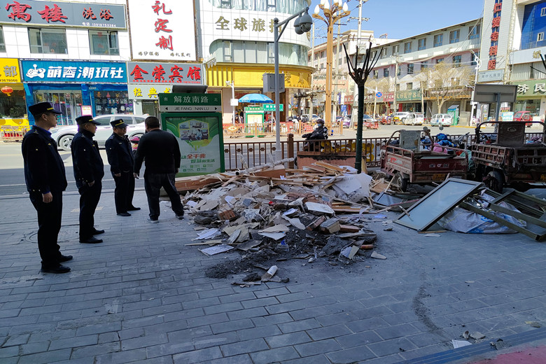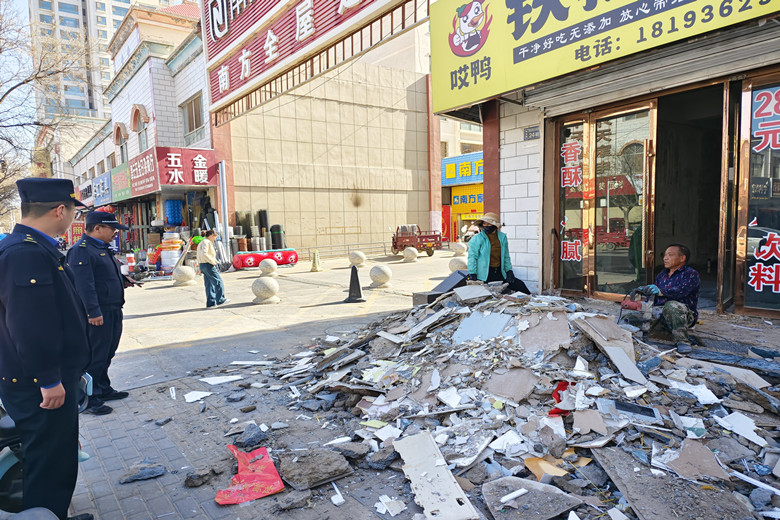 一是规范装修手续办理。凡是发现在人行道和店外随意堆放装修建筑垃圾和杂物的,执法人员在第一时间告知业主办理相关审批手续、未经批准不得擅自占用公共地带堆放货物和杂物等注意事项。