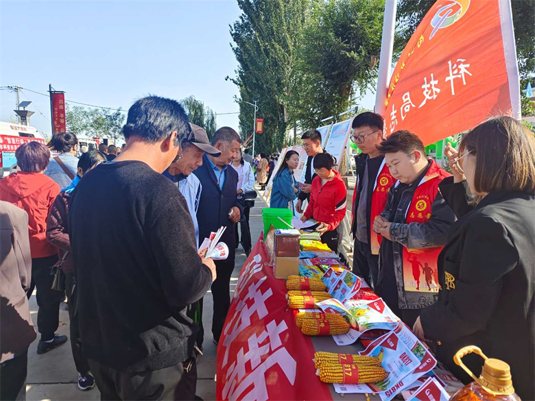 另一旁举行的农业科技新技术、新成果展示也吸引了不少群众的“眼球”,高台县各农资企业纷纷拿出自己的“看家”产品,通过摆放展板、发放宣传资料等,向前来咨询的群众详细讲解各类农作物种子、畜禽饲料等产品的优势特征及销售情况。同时,广泛宣传现代农业新技术、新理念,进一步提高广大农民群众的科学种养意识和水平,增强广大群众种养积极性。“现在在高台这边主要推广的就是陇丰211、陇丰256,两个品种的特点是根系发达,茎秆粗壮,抗红蜘蛛,产量基本都在1.1吨左右。”甘肃隆丰祥种业有限公司经理邱福才说。