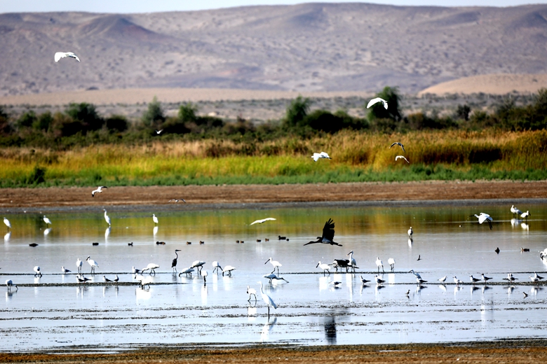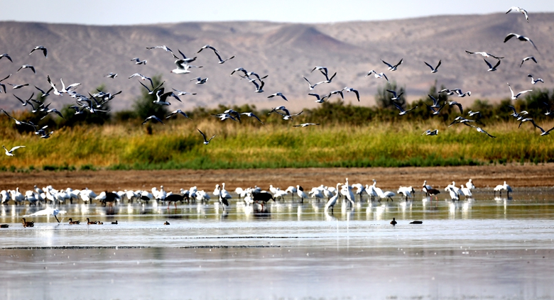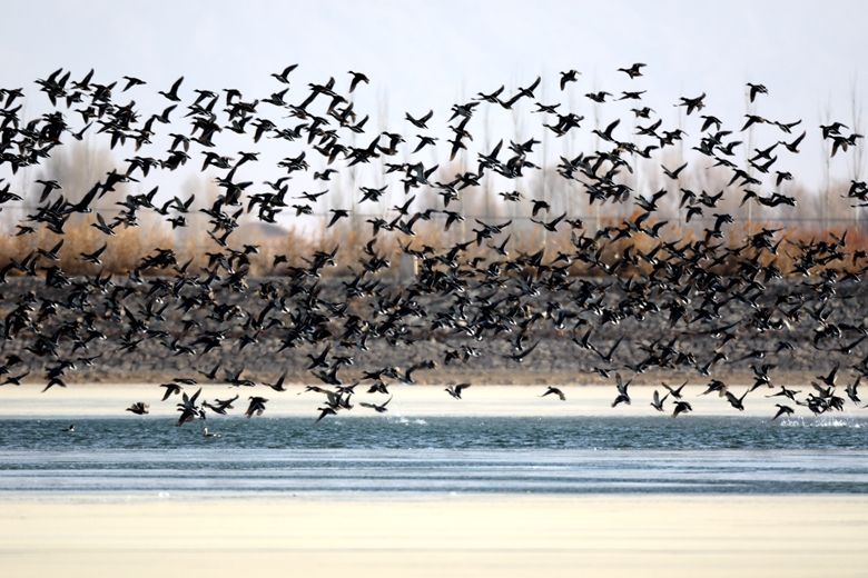 深秋,是大自然的调色盘,将山川染成一幅幅壮丽的画卷,美得让人心醉。在高台县黑河湿地保护区越冬的候鸟越来越多。每天,成千上万的黑鹳、白琵鹭、灰鹤、鸬鹚、灰雁等候鸟和留鸟在天空盘旋,在湿地上演万鸟齐飞的壮观景象,它们眷恋着黑河湿地的山水,呈现出一幅自然与生态融合的美丽景象。