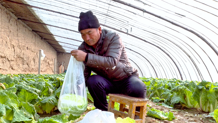 走进骆驼城镇新民村的温室大棚,一垄垄甘蓝、菜花长势喜人,一片生机勃勃的景象,村民苏向忠正忙着采摘成熟的蔬菜。这几年,他准确把握市场行情,种植生长期较短、管理相对简单的蔬菜,在保障“菜篮子”产品供应的同时,也有不错的收入。“我今年种了两棚蔬菜,一棚甘蓝,一棚娃娃菜、菜花,今年的菜价比起往年还可以,两个棚今年预计能收入8000元左右。”苏向忠说。