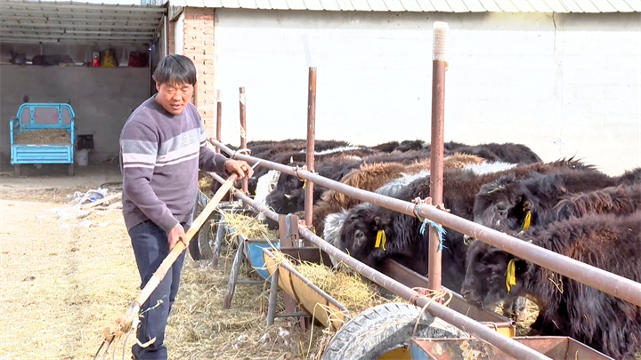 新坝镇海拔高、气候冷凉,适合牦牛生长。西上村村民王文昌借助当地的自然气候和牦牛抗病力强、食性广、便于饲养管理的特点,通过引进优质品种、科学饲养管理等方式,实现了牦牛养殖规模化、产业化发展。“现在的存栏是350-360头,牛犊有50-60头,一年卖50-60个大些的牛,一头牛卖6000-7000元。”王文昌介绍。