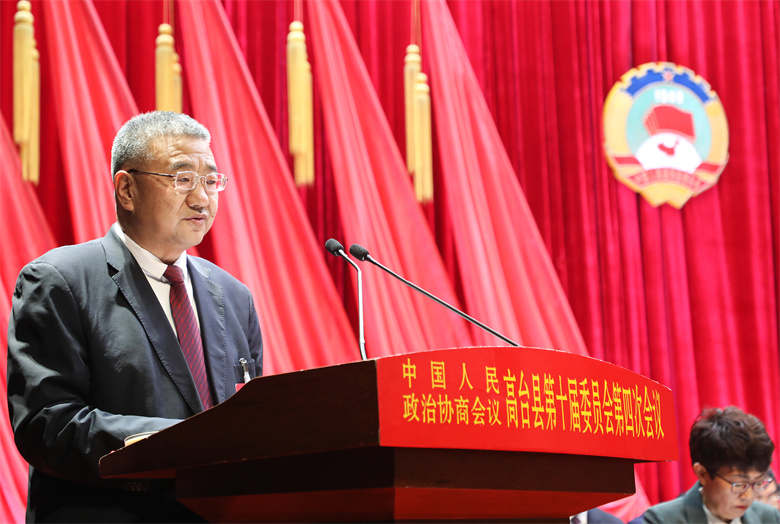 县政协副主席杨国辉代表政协高台县第十届委员会常务委员会报告十届三次会议以来的提案工作情况。政协十届三次会议以来,广大政协委员、县政协各参加单位和各专门委员会共提交提案116件,经审查合并立案49件,已办理答复完毕,办复率为100%,满意率达99.4%。
