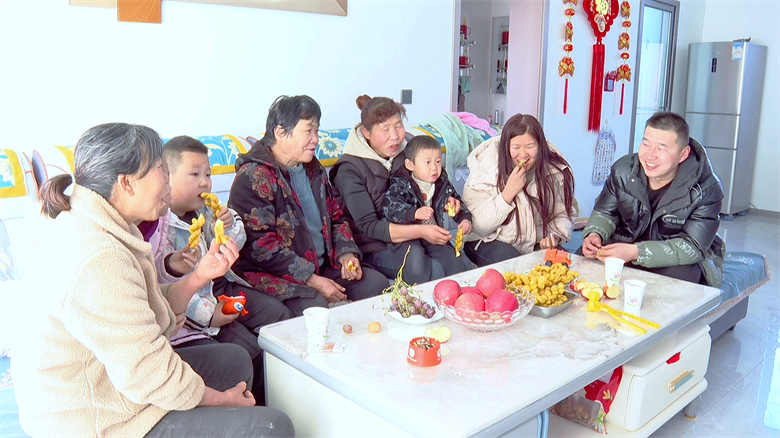 殷惠萍一家5口人,儿子张辉在外地上班,因工作忙碌,已经两年没有回家团聚。但今年不同,儿子儿媳带着孩子早早就回了家。“今年早些回来陪父母过个团圆年,一家人热热闹闹,红红火火的,也有个过年的氛围感。”殷惠萍儿子张辉说道。