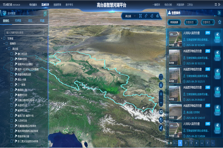 在整合机井、河湖监控等涉水数据的基础上,在黑河、山水河等重点地段架设高点位风光互补视频监控47套,建成首个智慧河湖监管系统,深度融合视频感知、人工智能、大数据分析等技术手段,在河湖敏感水域设置电子围栏,打造了人为扰动实时监测、疑似违规自动锁定、四乱问题系统派单、各级河长分级处置的全链条管护机制。