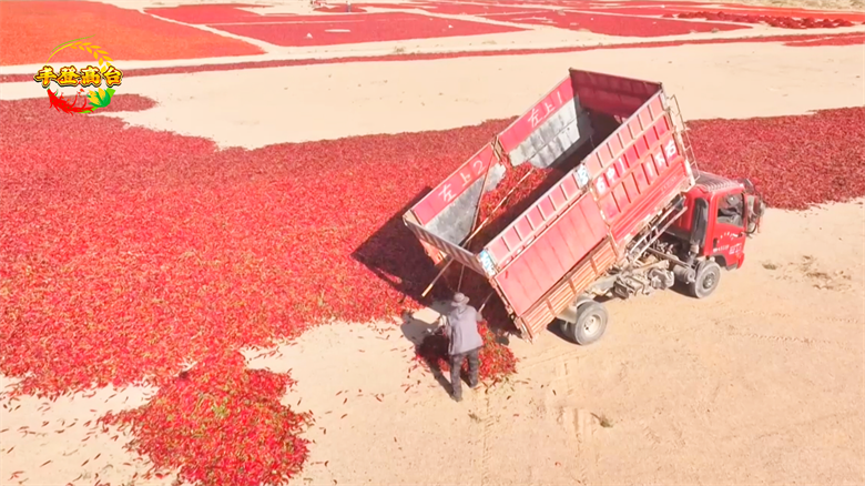 近年来,合黎镇通过科技培训、技术指导、成立专业合作社等方式,推动辣椒种植标准化、产业化发展。这里出产的辣椒干以其“色红、角长、肉厚、油多、味香、辣度适中”而闻名,辣椒产业已成为拉动当地乡村振兴的重要引擎。“我们9月初收开的,现在大约收了300多吨,可能预计再10天左右就全部收完了,总共能晾晒六七百吨。”辣椒收购商尹立国说。