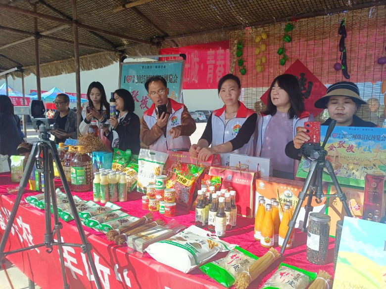 在活动现场,聚集全县40余种名优农特产品进行展示,组织企业开展打折、买赠、满减促销活动。组织电商企业、电商营销专家服务团和带货达人,通过抖音、快手、视频号等直播平台大力宣传农民丰收节特色和亮点,精选祁连葡萄酒、大漠紫光黑番茄、辣椒制品、亚麻籽油、粉皮面筋等优质产品进行直播带货,实现了商户引流与消费者得实惠“双赢”。