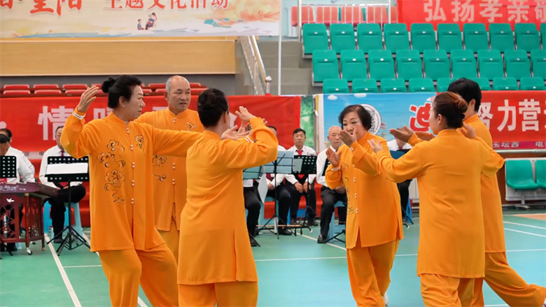 文艺演出之后,“活力银龄”健身项目展演接续登场。太极拳动作舒缓而有力,健身气功节奏从容,柔力球表演则轻盈灵动。参与者整齐划一的动作、矍铄的精神面貌,不仅展示了老年人健康文明的生活方式,也成为“老有所乐、老有所健”的生动写照。