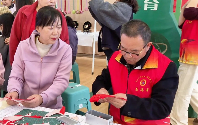 活动现场,“非遗巧韵”互动体验区吸引了不少老人驻足。剪纸、香包制作、长寿结编织等重阳主题手工艺项目,在非遗传承人的指导下,成为老人们亲手创作的作品。一剪一缝一编之间,传统文化与敬老情感巧妙融合。
