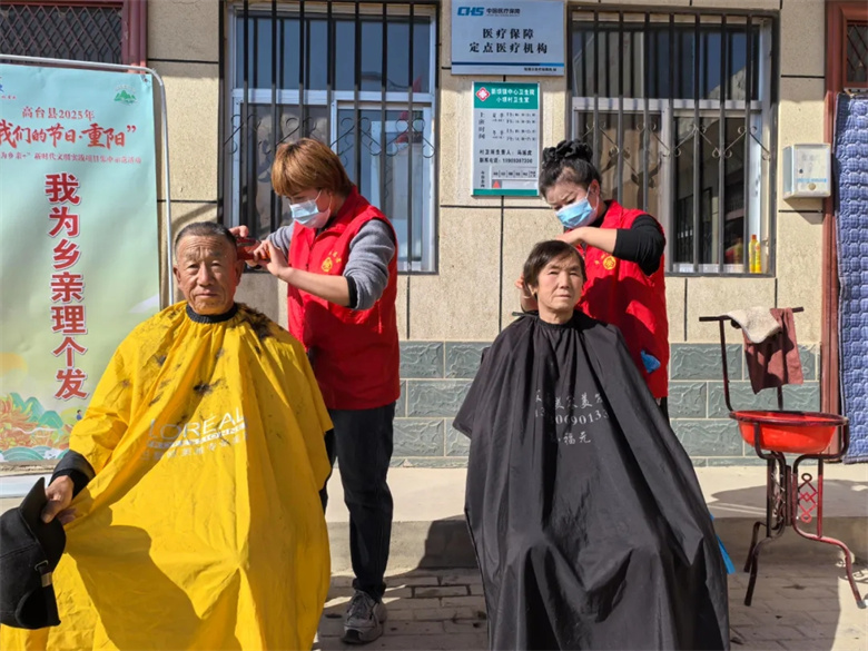下午的活动现场同样精彩纷呈。“我为乡亲+”志愿服务展台前,免费理发、健康义诊、亲情拍照、书画赠送等便民服务深受老人欢迎。旁边的“非遗巧韵”体验区更是欢声不断,茱萸香包制作、艾草养生锤等互动项目吸引了不少老人与子女共同参与,在动手协作中感受传统文化的魅力。“红色高台·文明有我”主题展则集中展示了全县精神文明建设的丰硕成果,引来村民驻足观看。