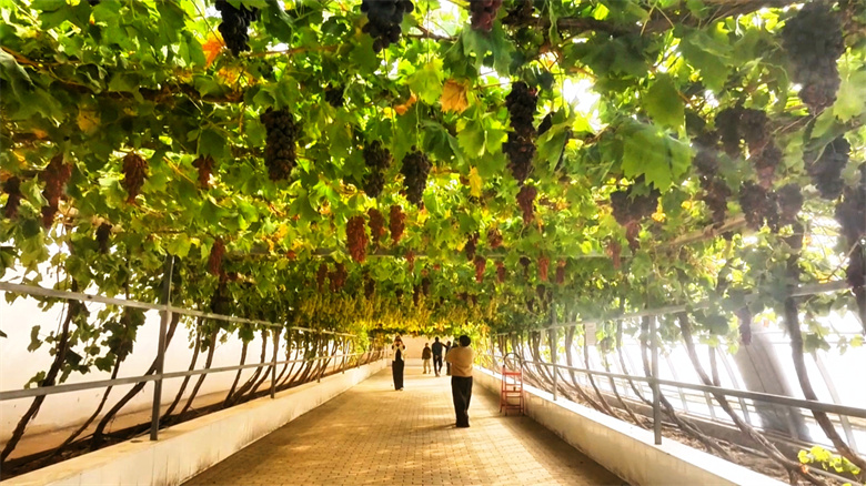 “眼下这个时段,正值鲜食葡萄的市场空白期。我们正是瞄准了这个‘时间差’,让我们的晚熟品种精准‘补缺’上市,所以价格理想,线上线下销售都非常火爆。”庄园管理员王福贵介绍道,这一差异化策略显著提升了种植效益。