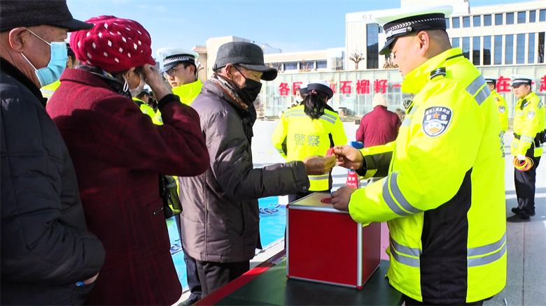 活动现场气氛热烈,互动环节丰富多彩,吸引了众多市民踊跃参与。在抽题答题区,行人通行规则、安全驾驶常识等题目引发市民争相作答,大家在思考与抢答中巩固交通知识;套圈游戏区同样人气高涨,工作人员将交通标志元素融入各类奖品,市民们在精准投掷的欢声笑语中,潜移默化加深对交通标识的记忆。针对冬季雨雪天气多、路面易结冰的出行特点,县公安局交通管理大队民警用通俗易懂的语言,向市民详细讲解了冬季行车安全技巧、突发事件应急处置等实用知识,为市民冬季出行保驾护航。