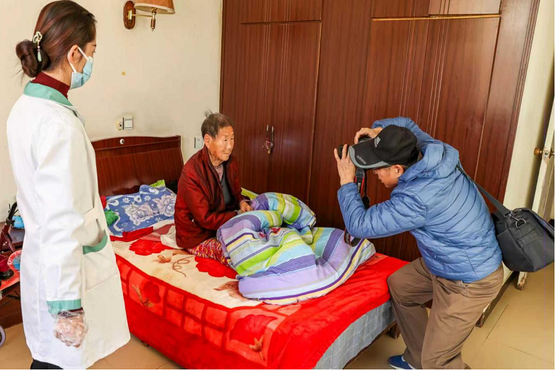 光影定格岁月,珍藏夕阳美好。在温馨的临时摄影点,社工与志愿者们耐心引导,用镜头细心捕捉老人们此刻的神采。“每年都盼着你们来拍照,看,我今年精神头更好了吧!”张大爷的话道出了老人们的认可与期待。对行动不便的老人,志愿者到床前为老人拍照,这份定期的影像记录,已成为连接时光、寄托情感的独特纽带。