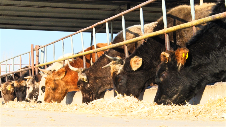 在甘肃燕塘传祁牧业有限公司的标准化牛舍内,暖风阵阵,肉牛毛色光亮、体态健壮。企业养殖场负责人许建鹏介绍,自入冬前,公司便在牛舍加装了防风墙与电动防风卷帘,并在奶厅、车库、产房等重点区域安装电热风幕,有效预防了饲料冻结、粪道结冰与设备运行故障。