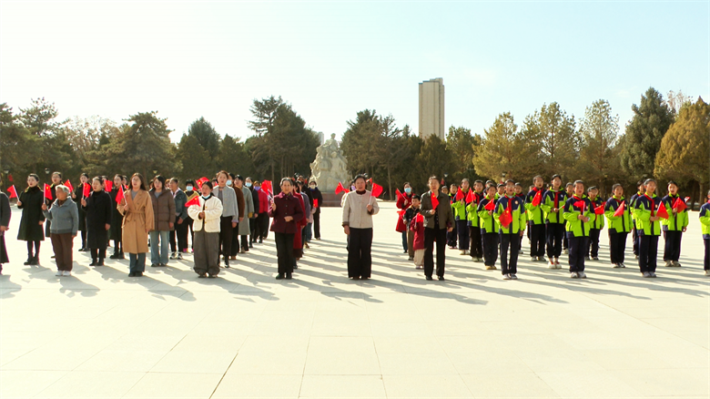 下午4时,活动在庄严的国歌声中拉开帷幕。全体人员肃立齐唱,雄壮的旋律回荡在纪念碑广场。随后,大家依次走向烈士公墓,敬献黄白菊花,缓步绕行一周,以朴素庄重的方式表达对妇女抗日先锋团先烈的深切哀思。