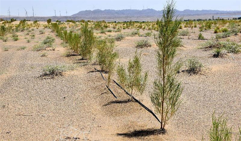 走进黑泉镇胭脂堡滩,去年新栽的梭梭已吐出新绿。这片位于风沙口的万亩造林地,是“三北”工程攻坚战的重要战场。“以前风一起就黄沙漫天,现在林子起来了,风沙小多了。”正在巡护的护林员秦伏军说。