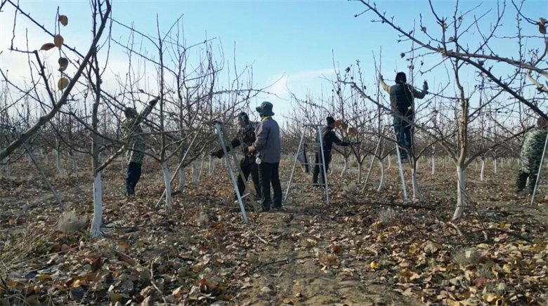走进位于新坝镇许三湾村的共裕高新农牧科技有限公司,成片的梨树林里,工人们正忙着修剪枝条。该公司将戈壁滩改造成“花果园”,种植早酥红梨、新梨7号等3000亩新品种梨树,走出了一条绿色发展之路。