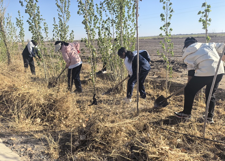 植树正当时,护绿不松懈。合黎镇七坝滩、八坝滩植树区域的杂草清理同步推进。干部职工手持铁锨、铁耙、手叉等工具,对历年义务植树区域的杂草进行集中铲除、统一清运,为苗木生长“松绑减负”,为生态管护“清除障碍”。同步做好苗木灌水、修枝等抚育管护工作,全力优化林木生长环境,确保“栽得上、活得好、长得壮”,有效巩固了前期造林绿化成果,昔日荒滩再换“绿装”。