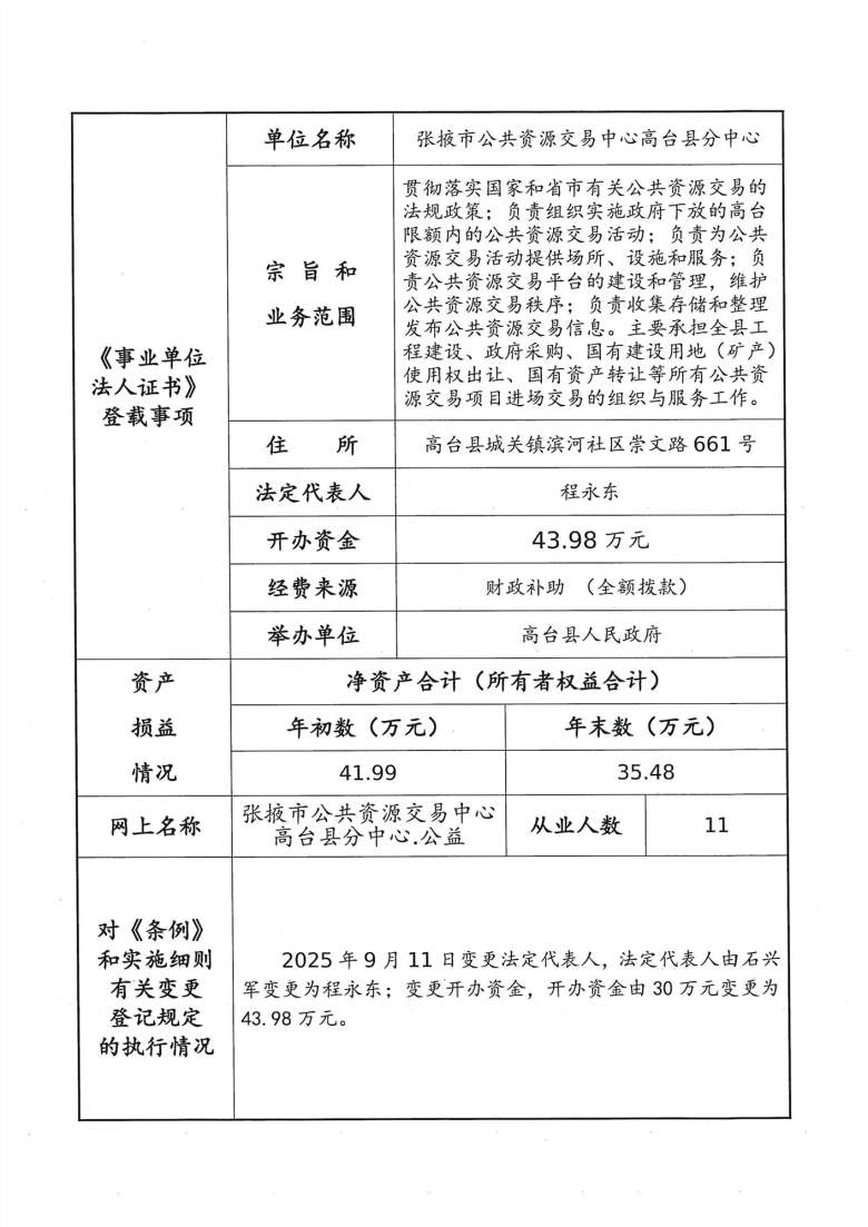 张掖市公共资源交易中心高台县分中心2025年度事业单位法人年度报告书