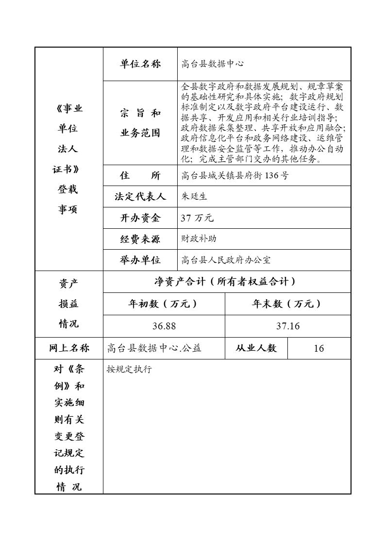高台县数据中心2025年度事业单位法人年度报告书