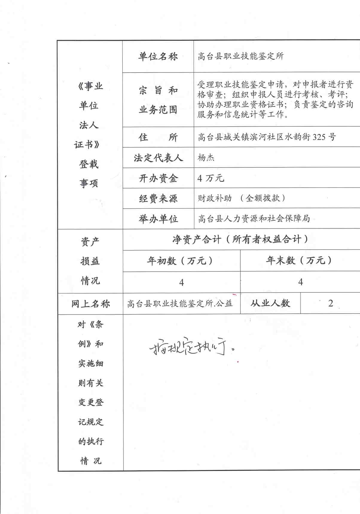 高台县职业技能鉴定所2025年度事业单位法人年度报告书