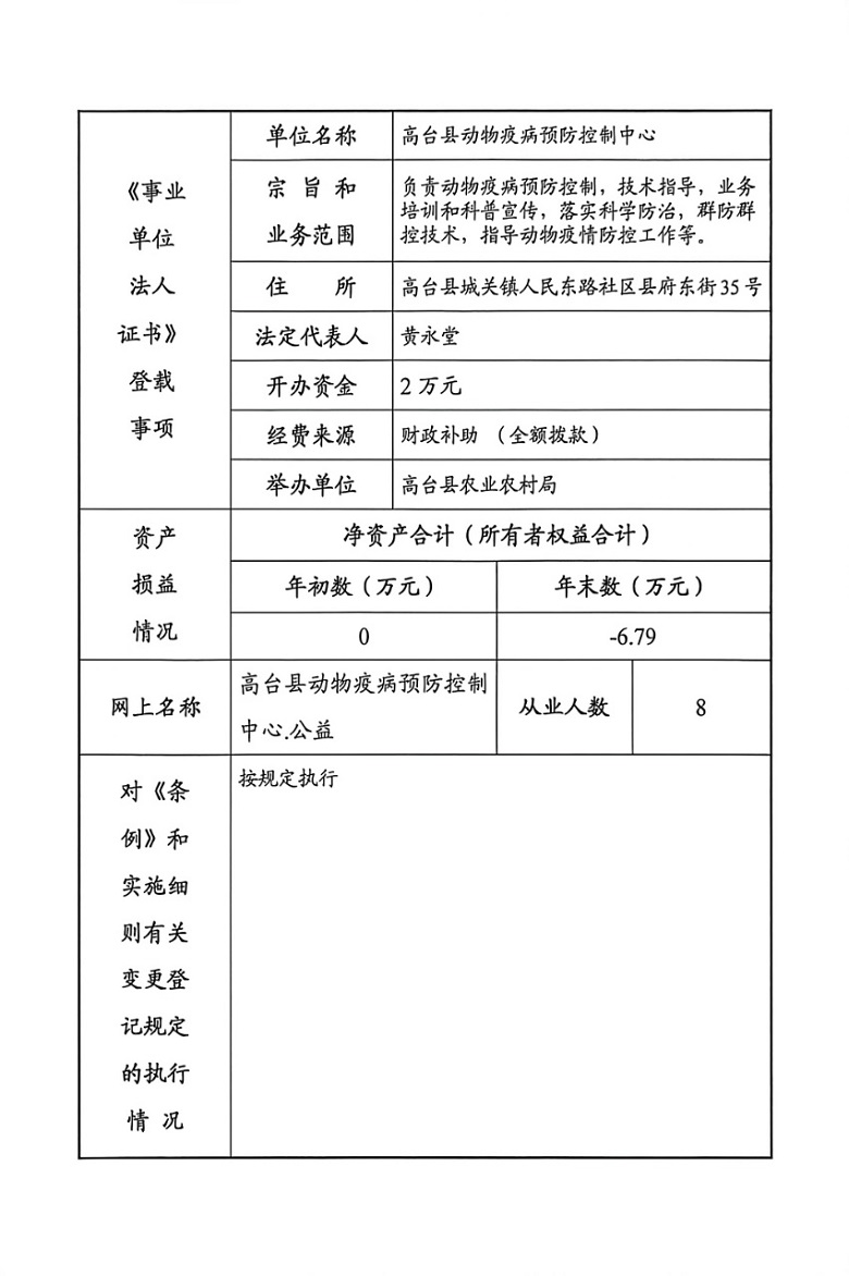高台县动物疫病预防控制中心2025年度事业单位法人年度报告书