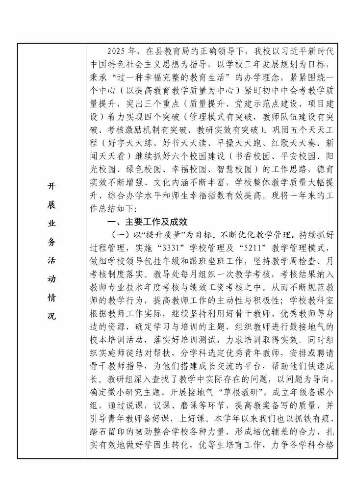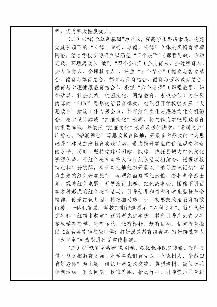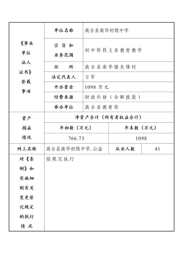高台县南华初级中学2025年度事业单位法人年度报告书