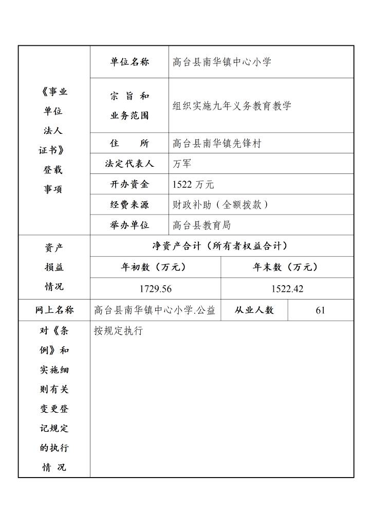高台县南华镇中心小学2025年度事业单位法人年度报告书