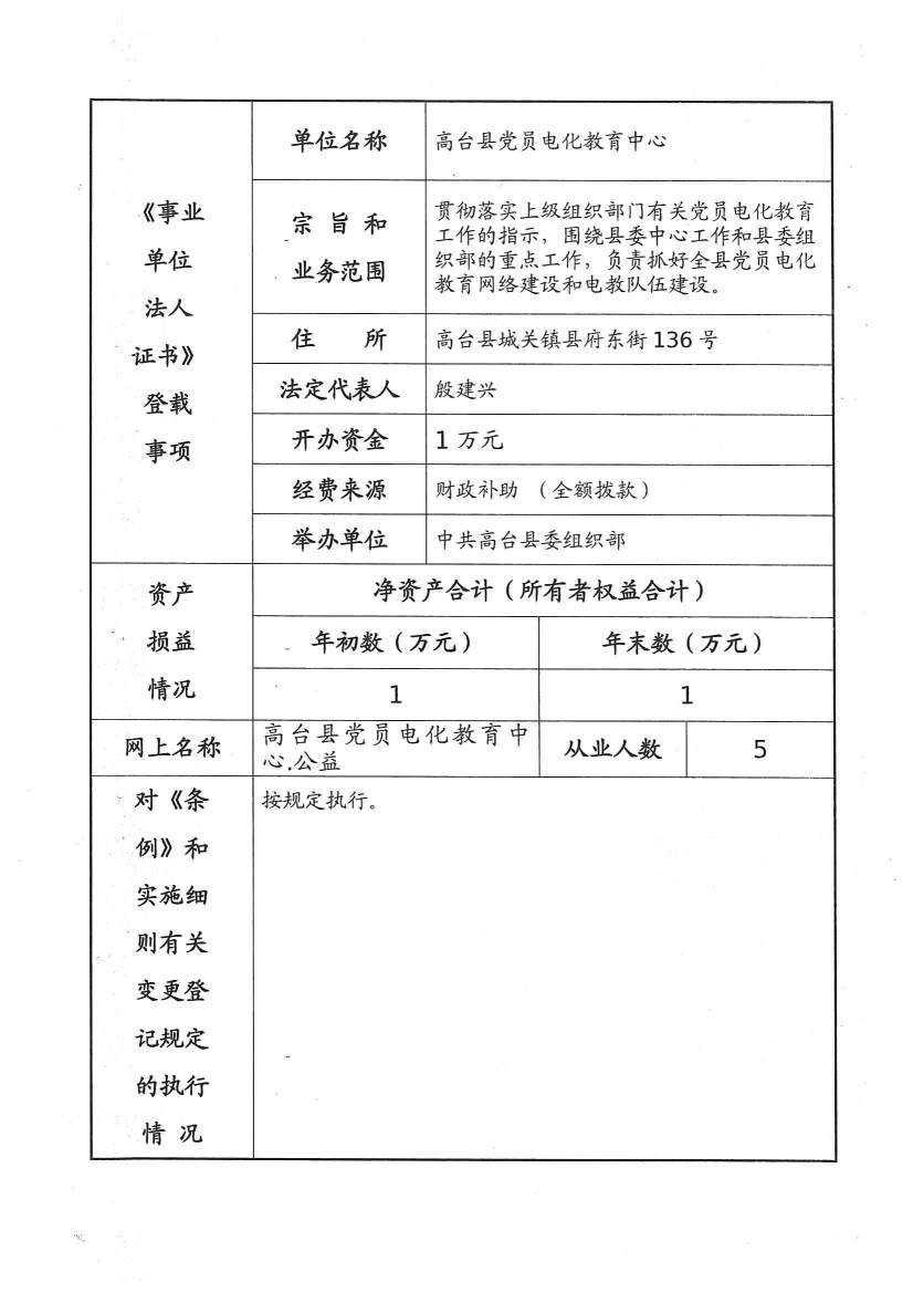 高台县党员电化教育中心2025年度事业单位法人年度报告书