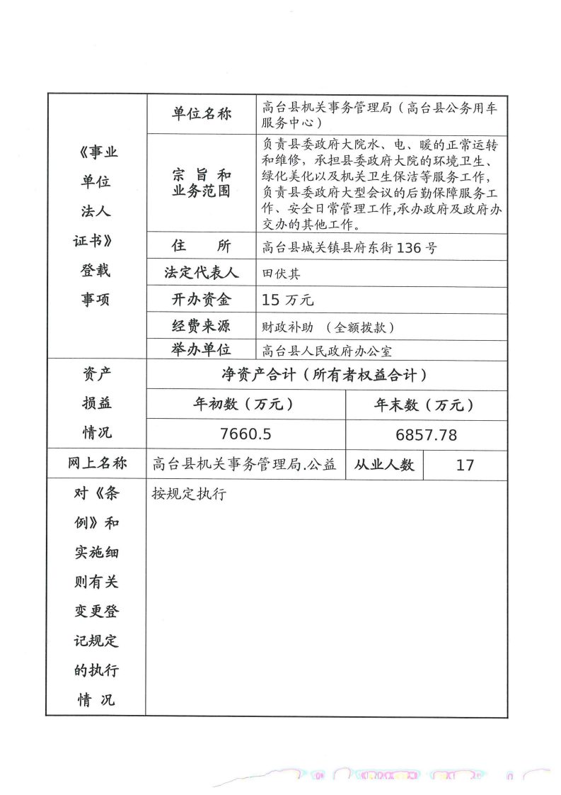 高台县机关事务管理局2025年度事业单位法人年度报告书