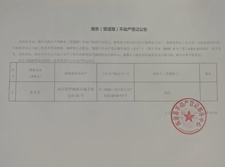 继承(受遗赠)不动产登记公告