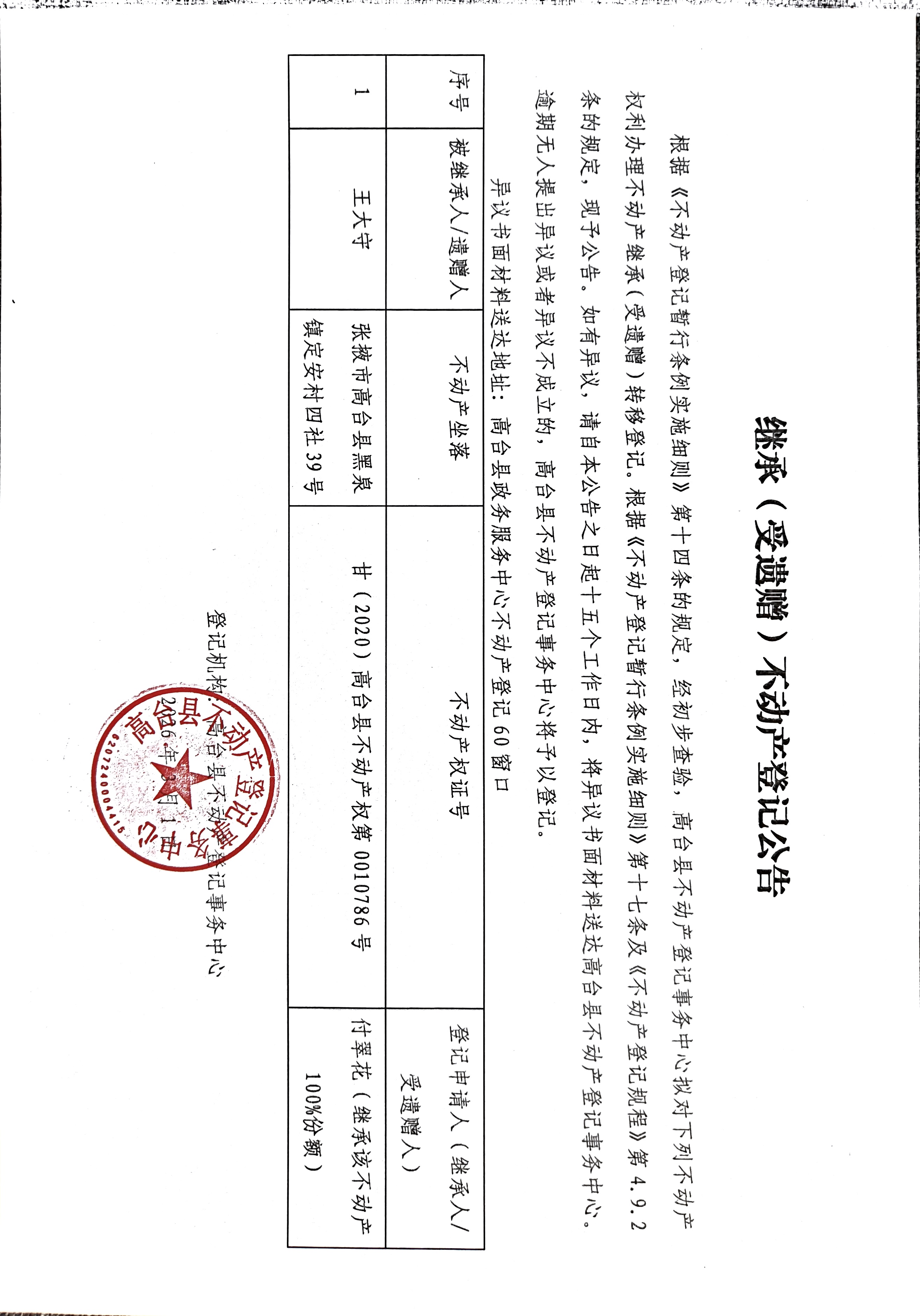 继承(受遗赠)不动产登记公告