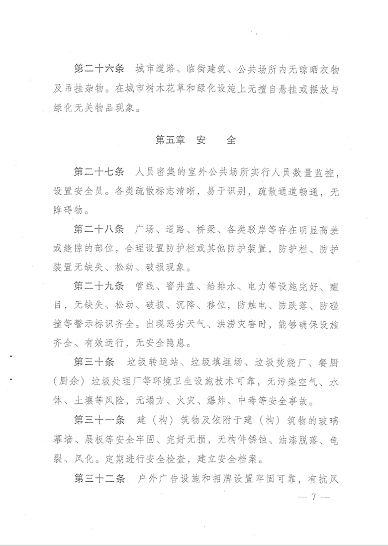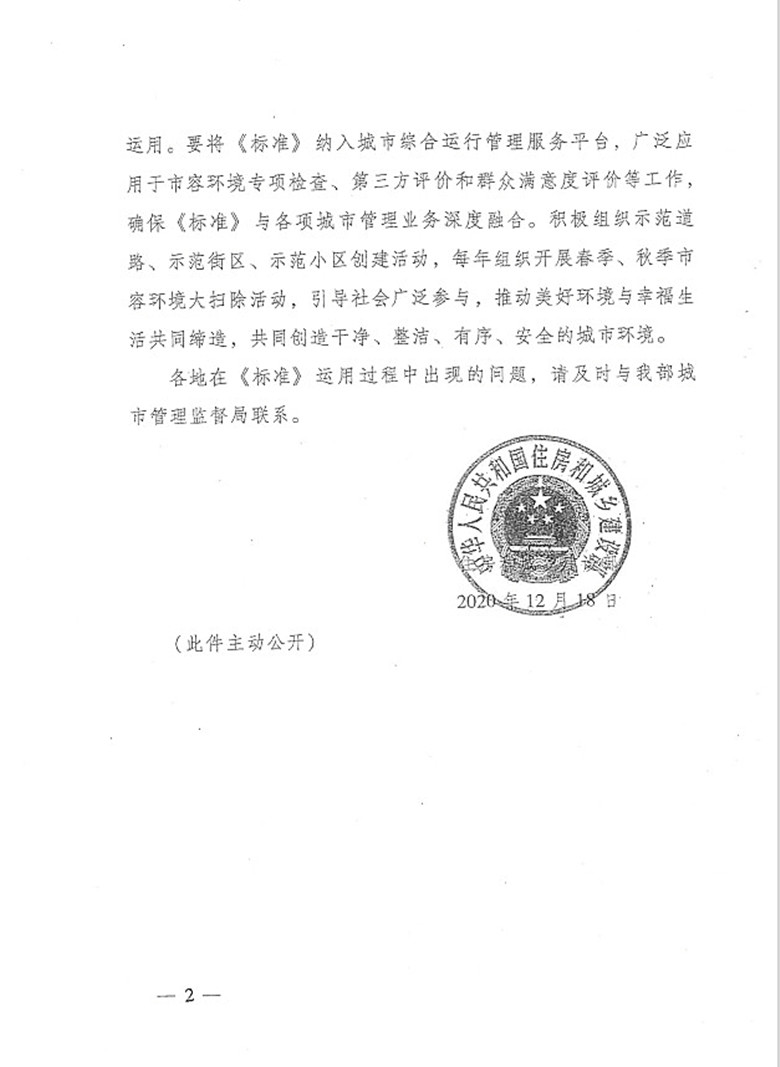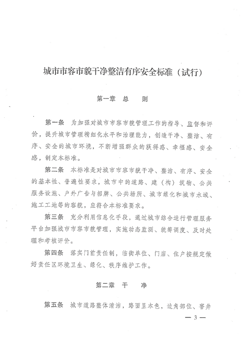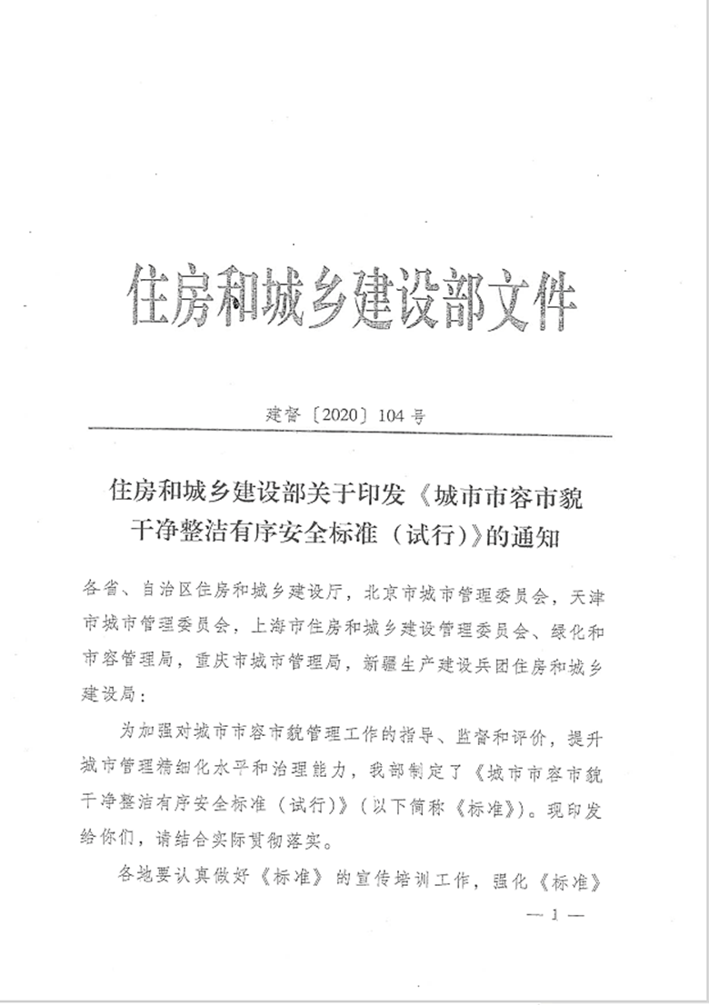 住房和城乡建设部关于印发《城市市容市貌干净整洁有序安全标准(试行)的通知》
