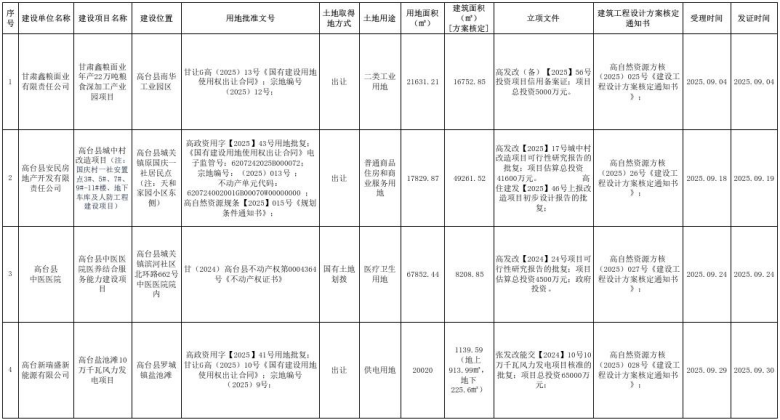 2025年9月高台县建设工程规划许可证