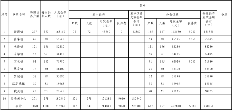 现将2023年城乡特困供养资金发放汇总表(6月份)公开如下: