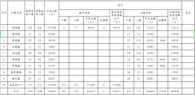 现将2023年城乡特困供养资金发放汇总表(7月份)公开如下: