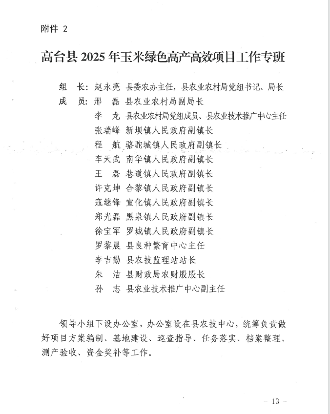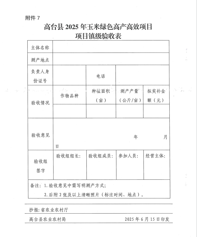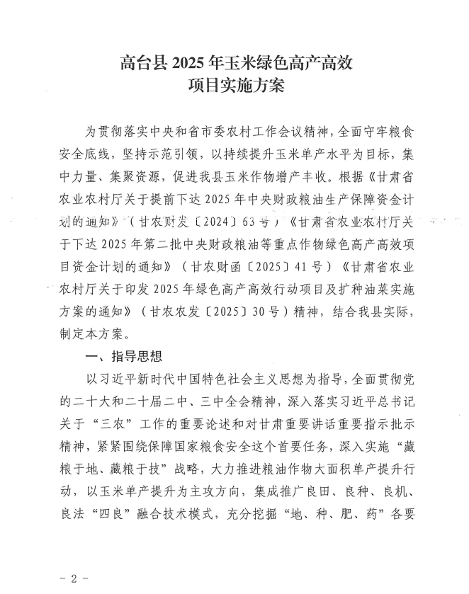 高台县农业农村局关于印发高台县2025年玉米绿色高产高效项目实施方案的通知