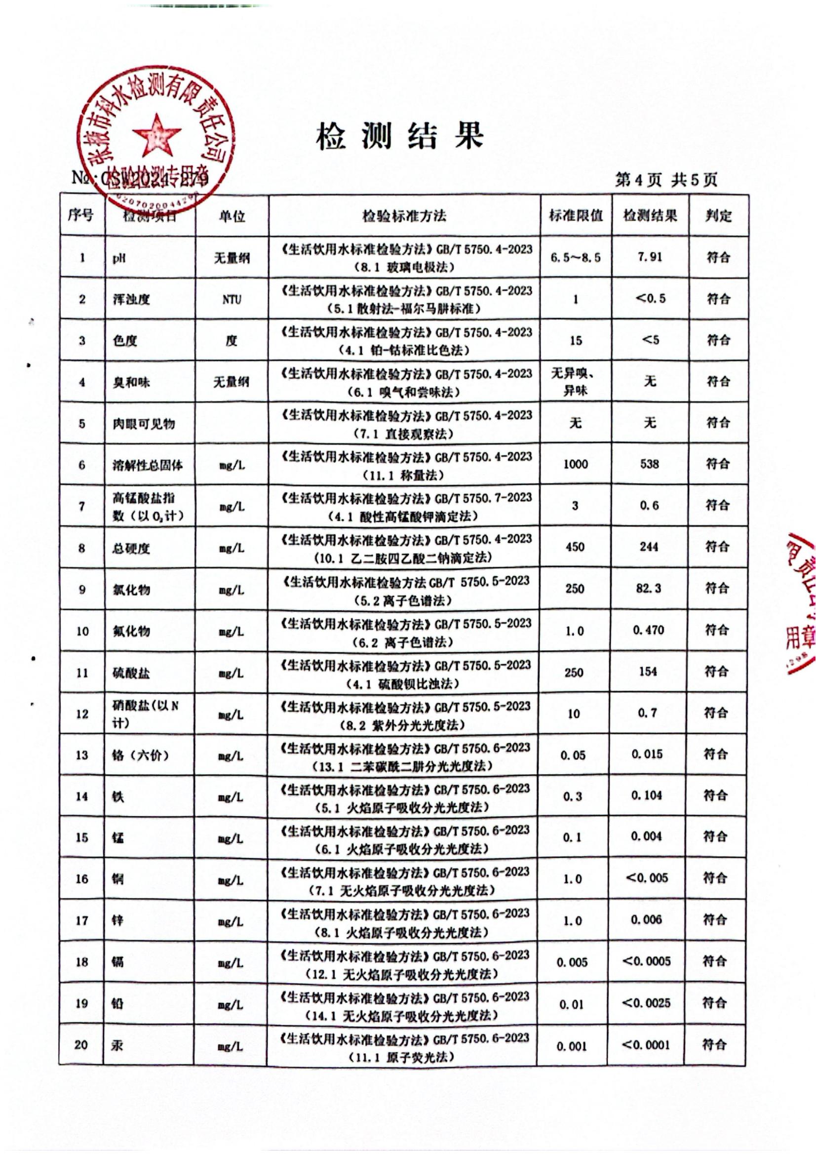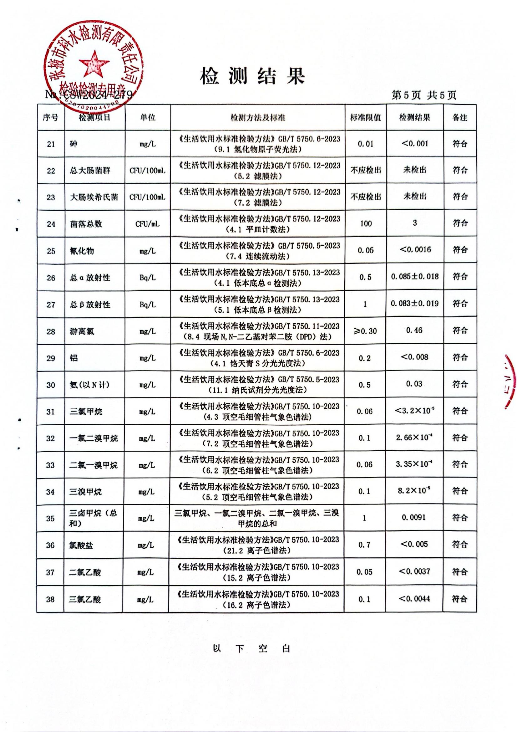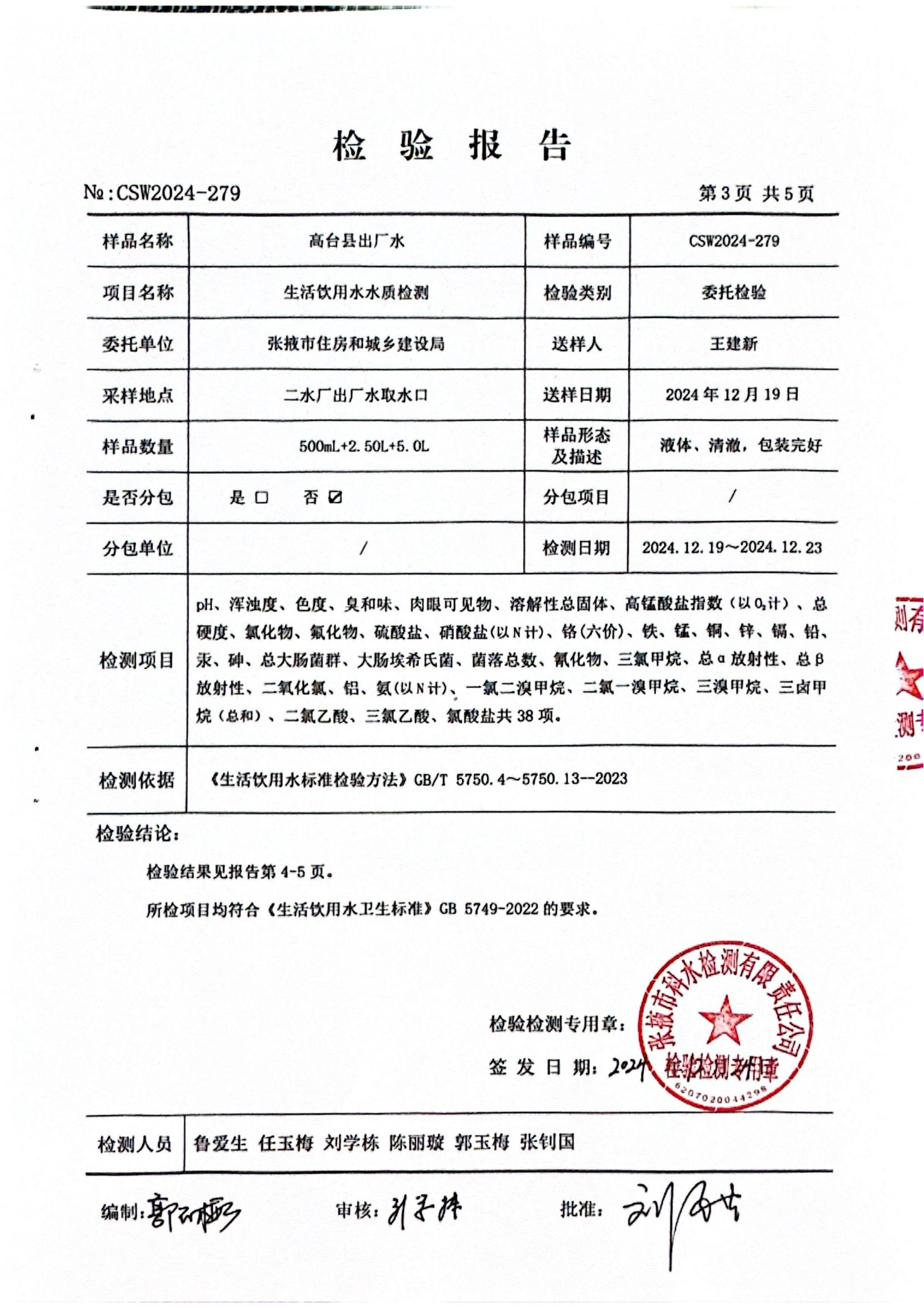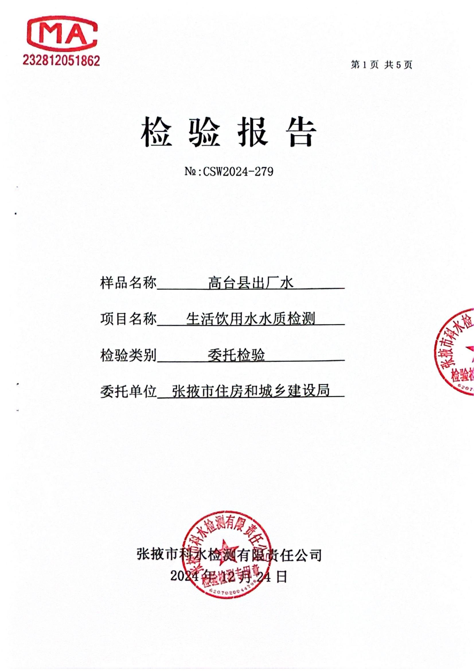 高台县城区饮用水2024年12月份水质(出厂水)检测报告