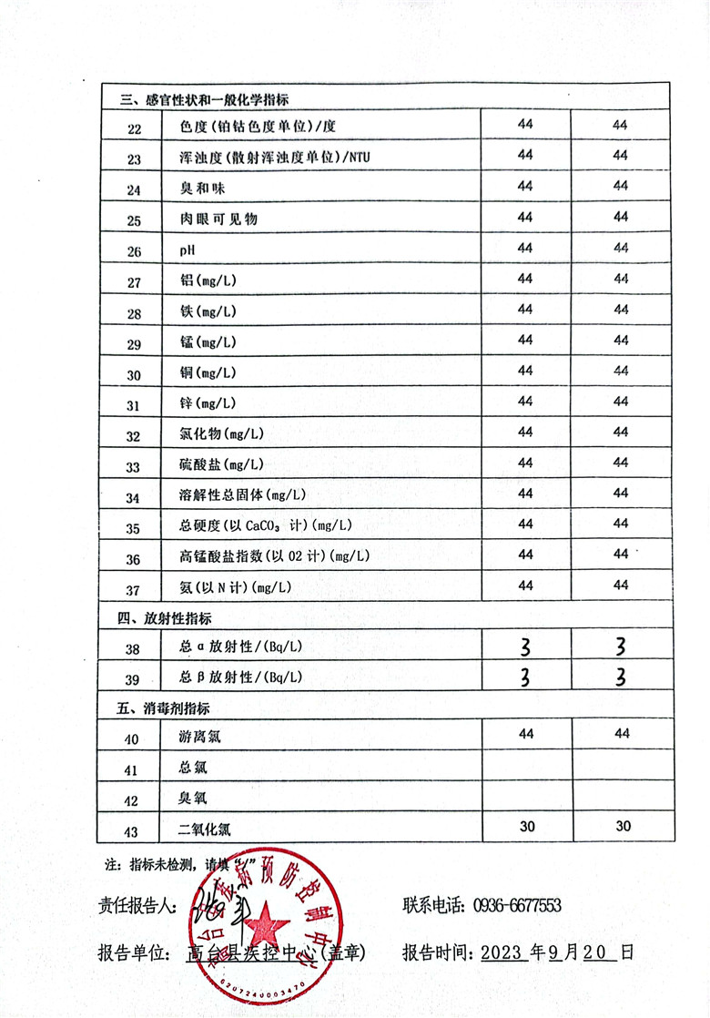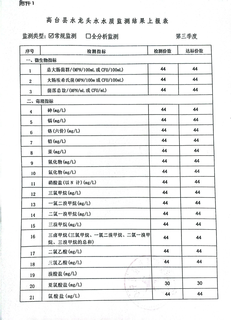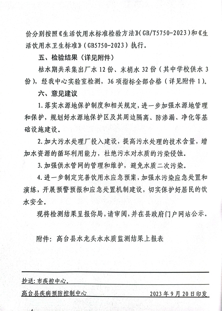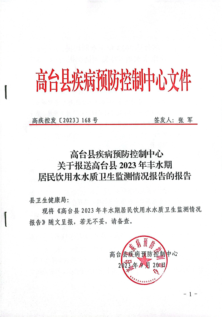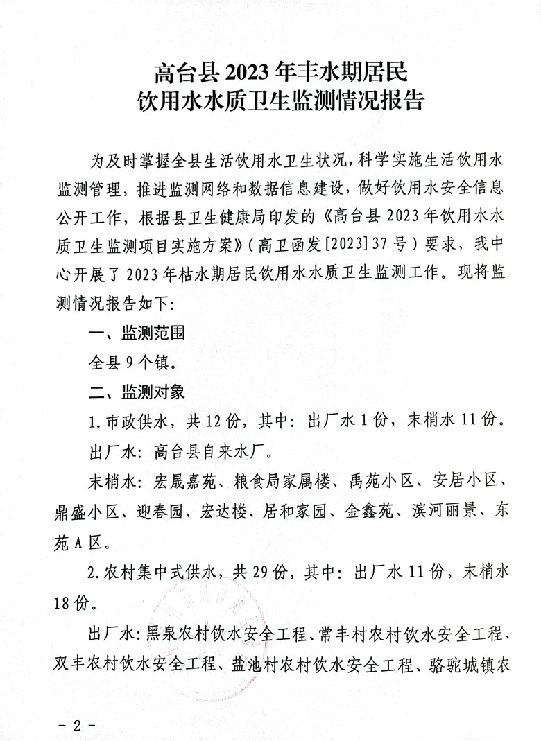 关于报送高台县2023年丰水期居民饮用水水质卫生监测情况报告的报告