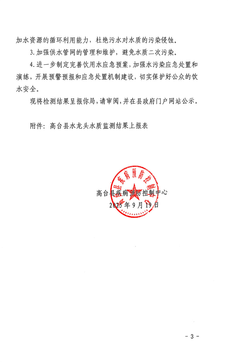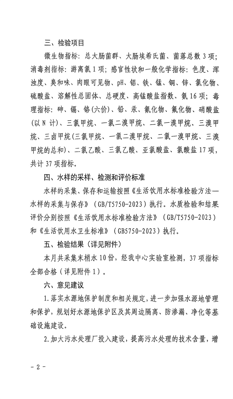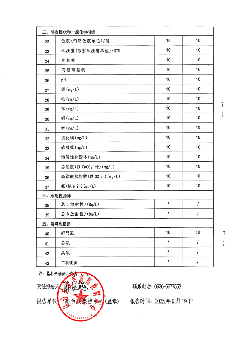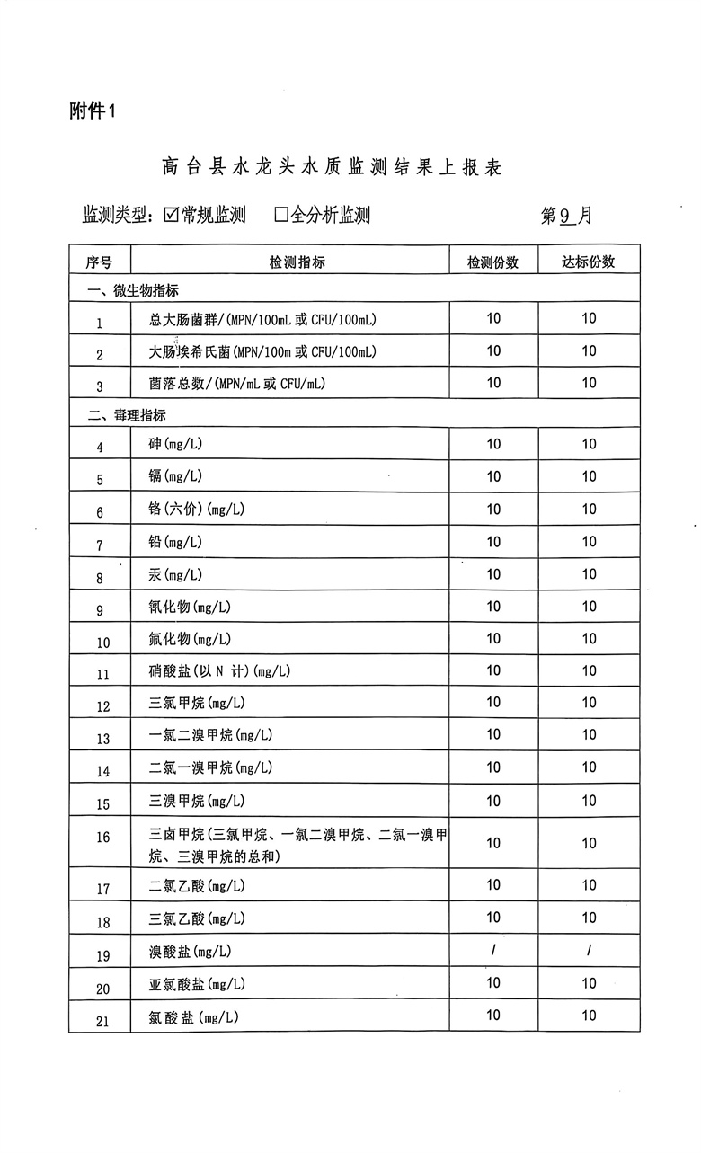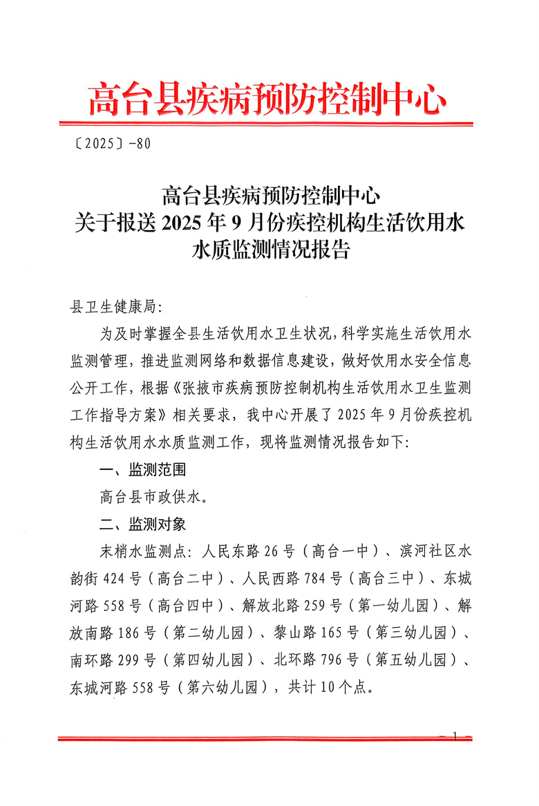 2025年9月份疾控机构生活饮用水水质监测情况报告