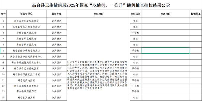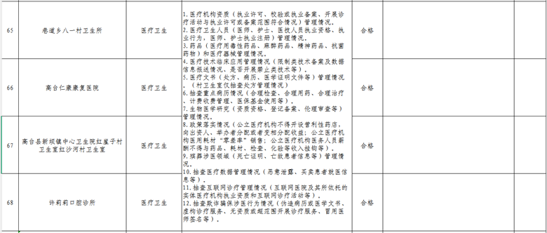 高台县卫生健康局2025年国家“双随机、一公开”随机抽查抽检结果公示
