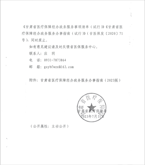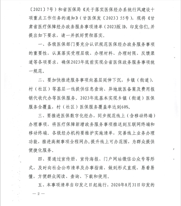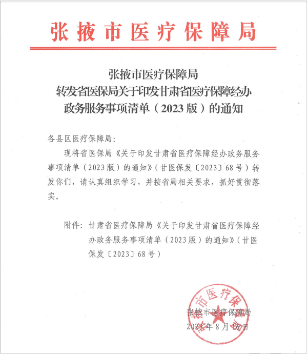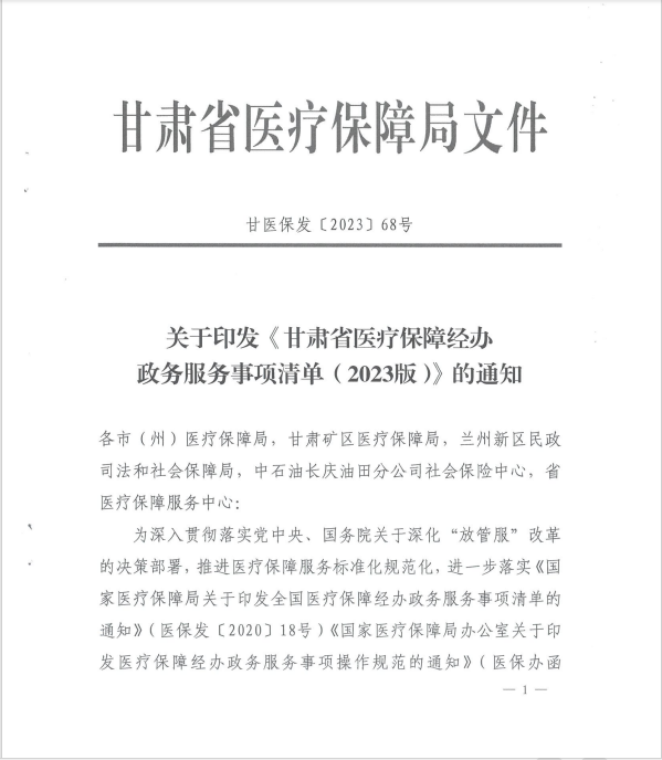 转发《关于印发甘肃省医疗保障经办政务服务事项清单(2023版)的通知》的通知
