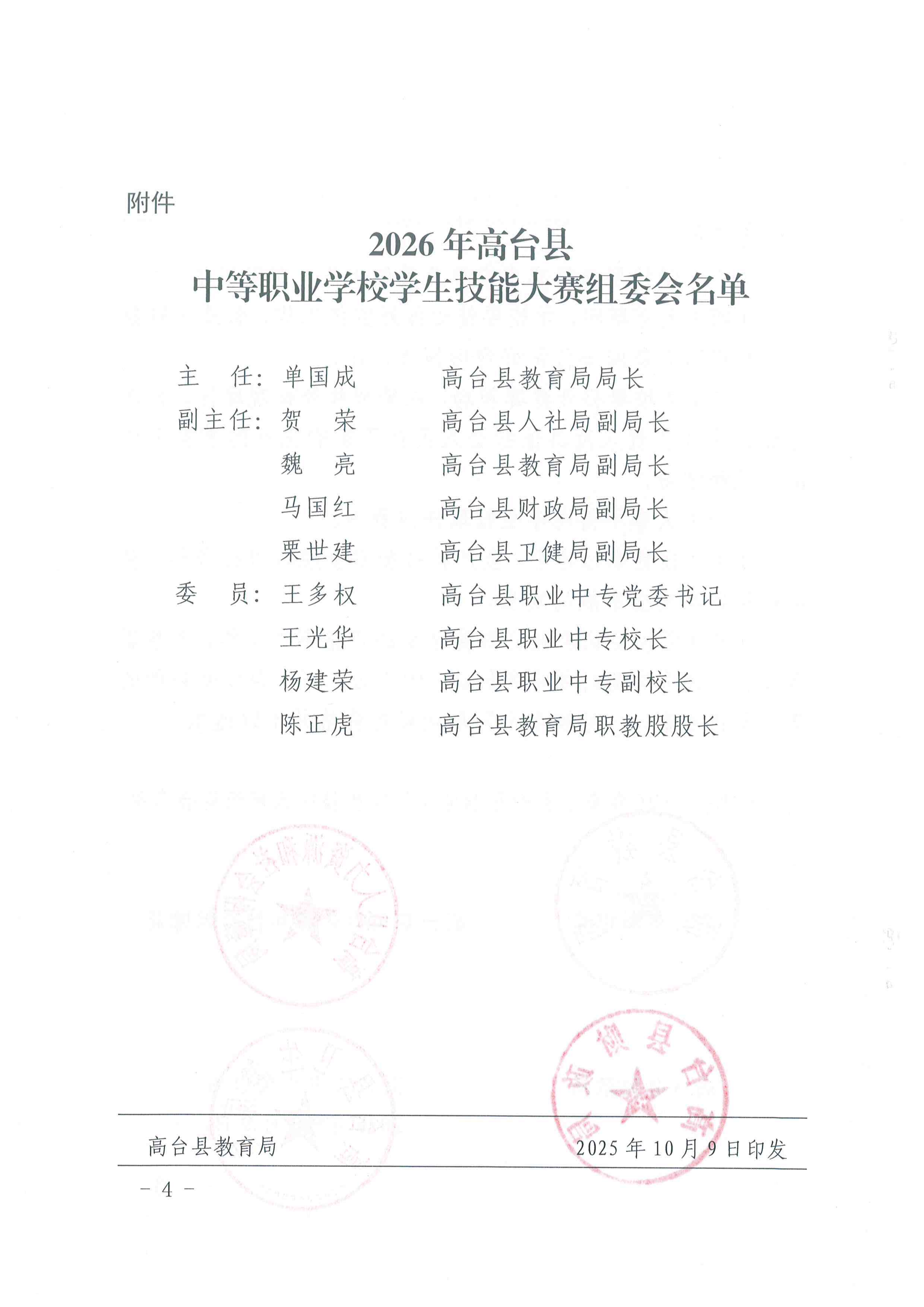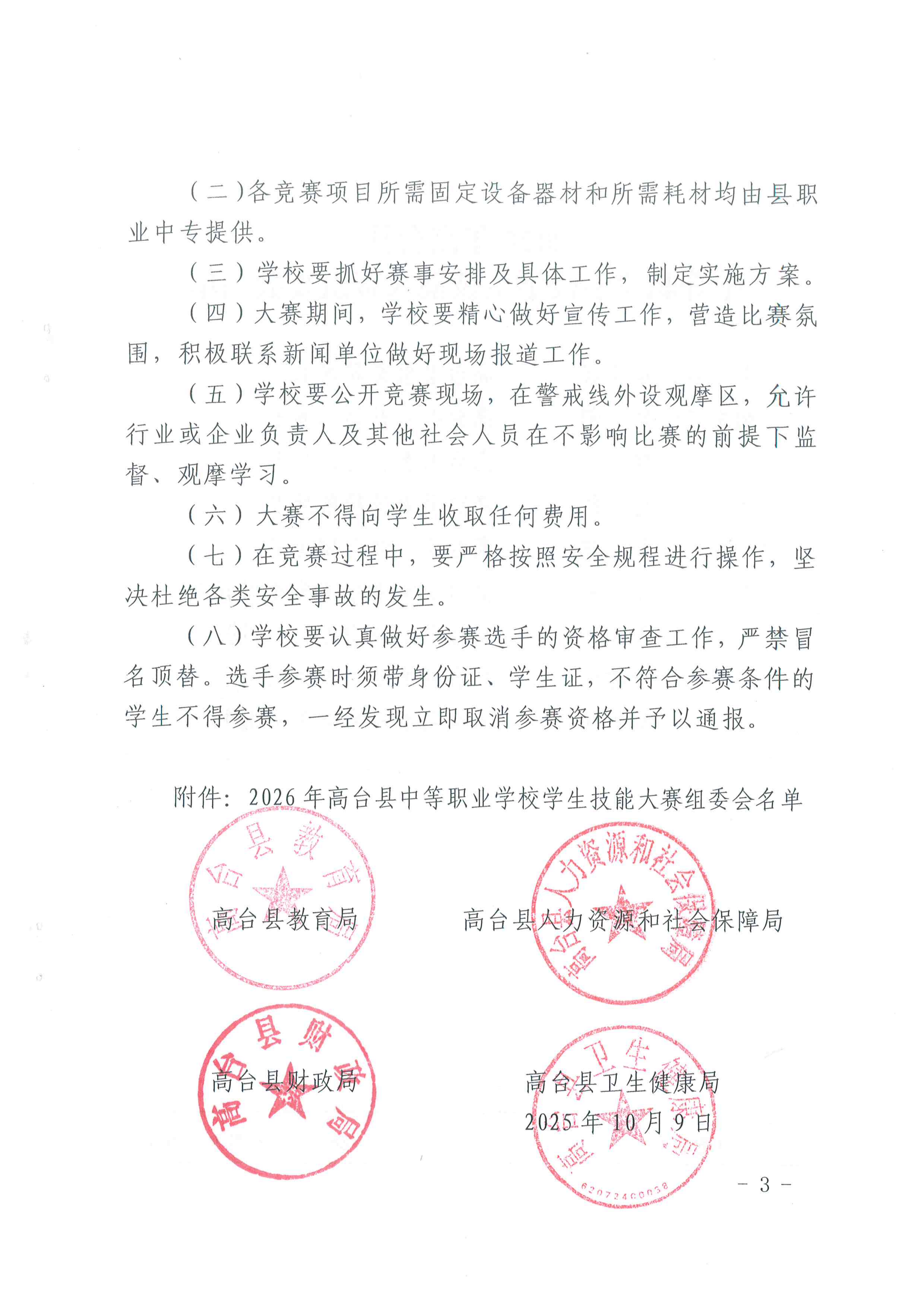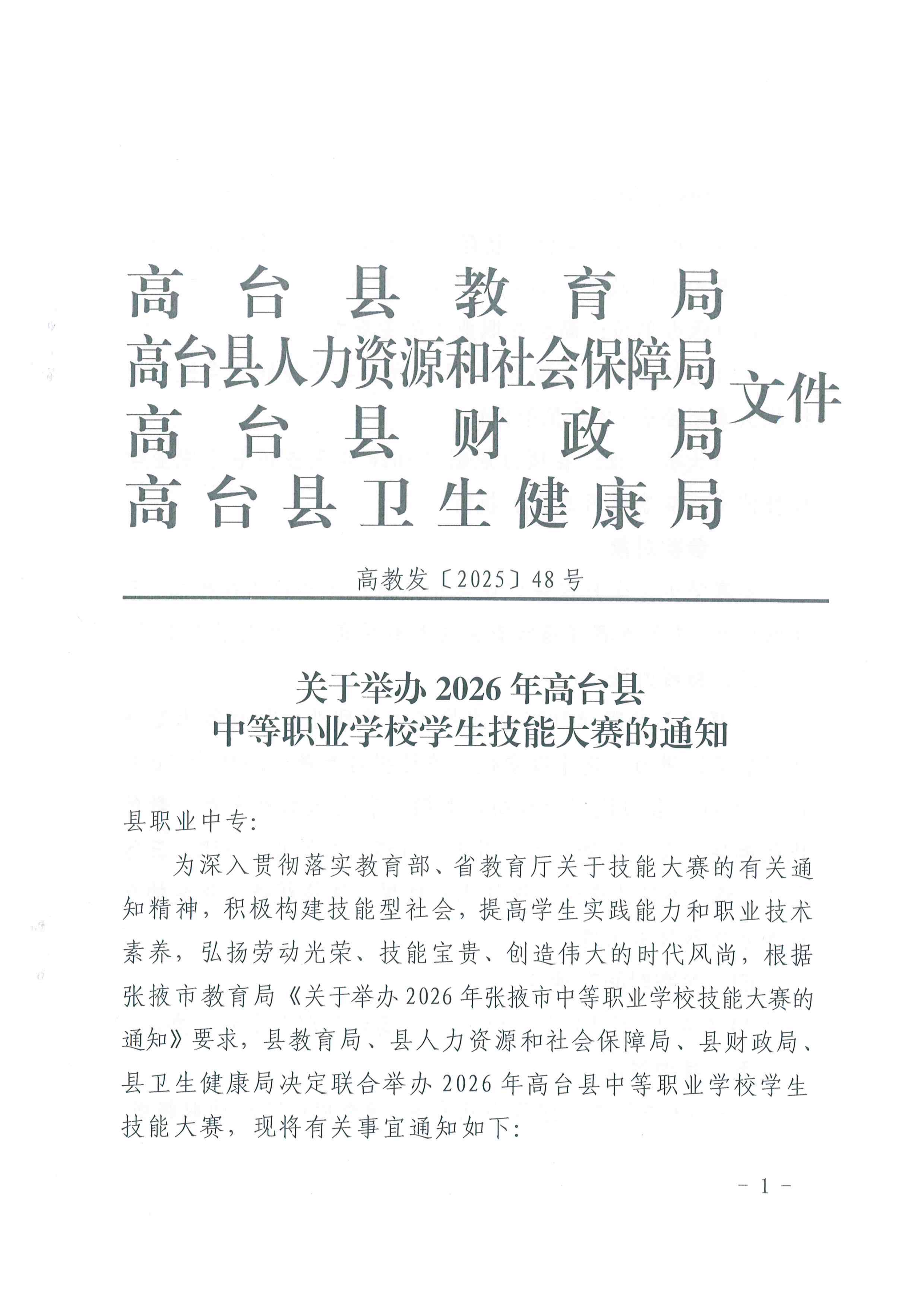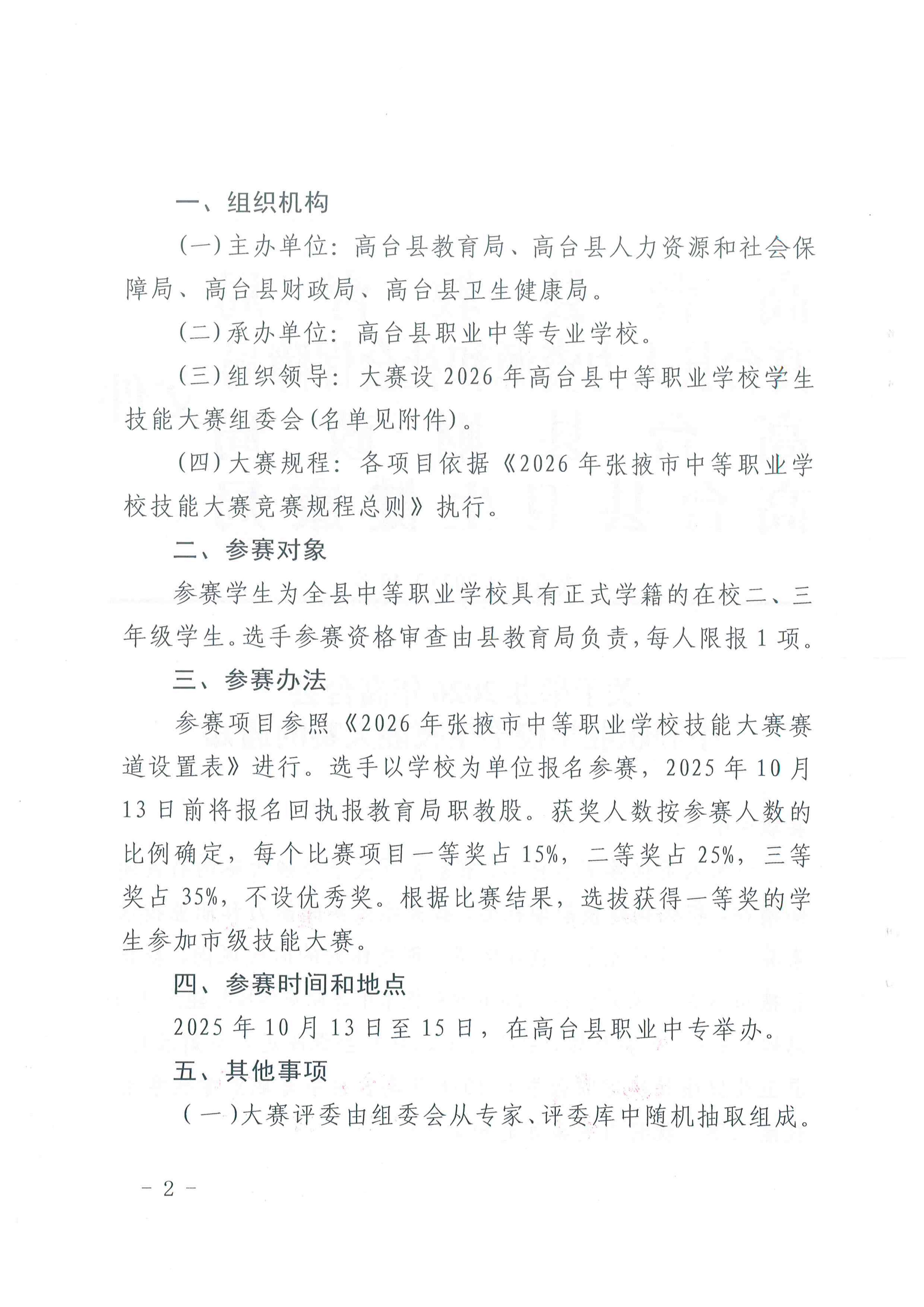 关于举办2026年高台县中等职业学校学生技能大赛的通知