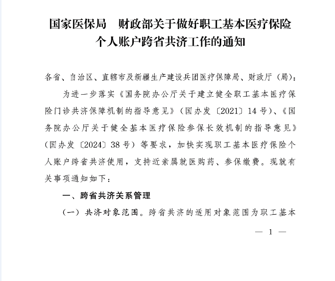 国家医保局 财政部关于做好职工基本医疗保险个人账户跨省共济工作的通知