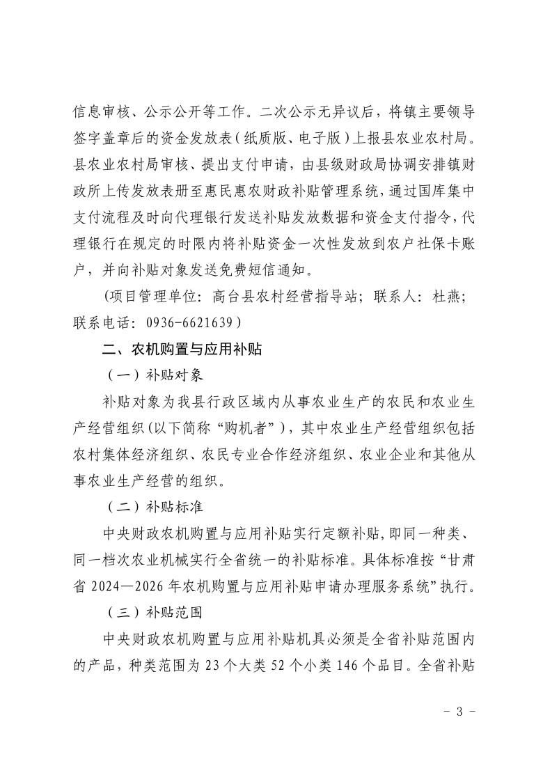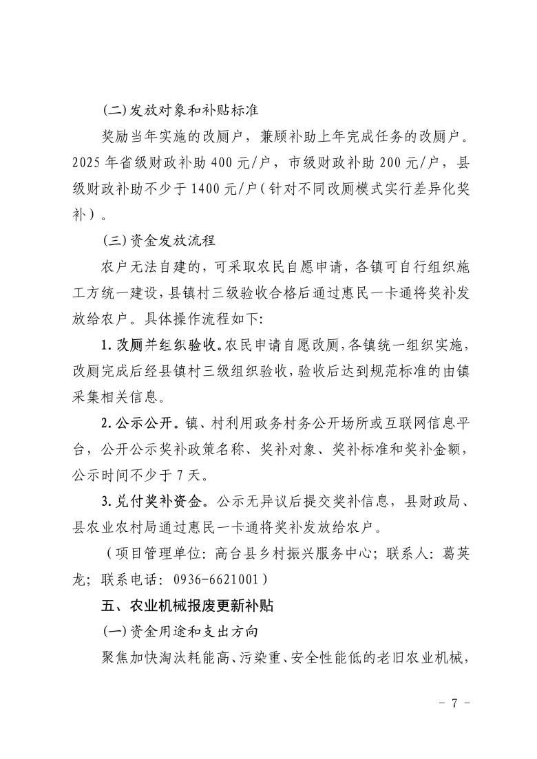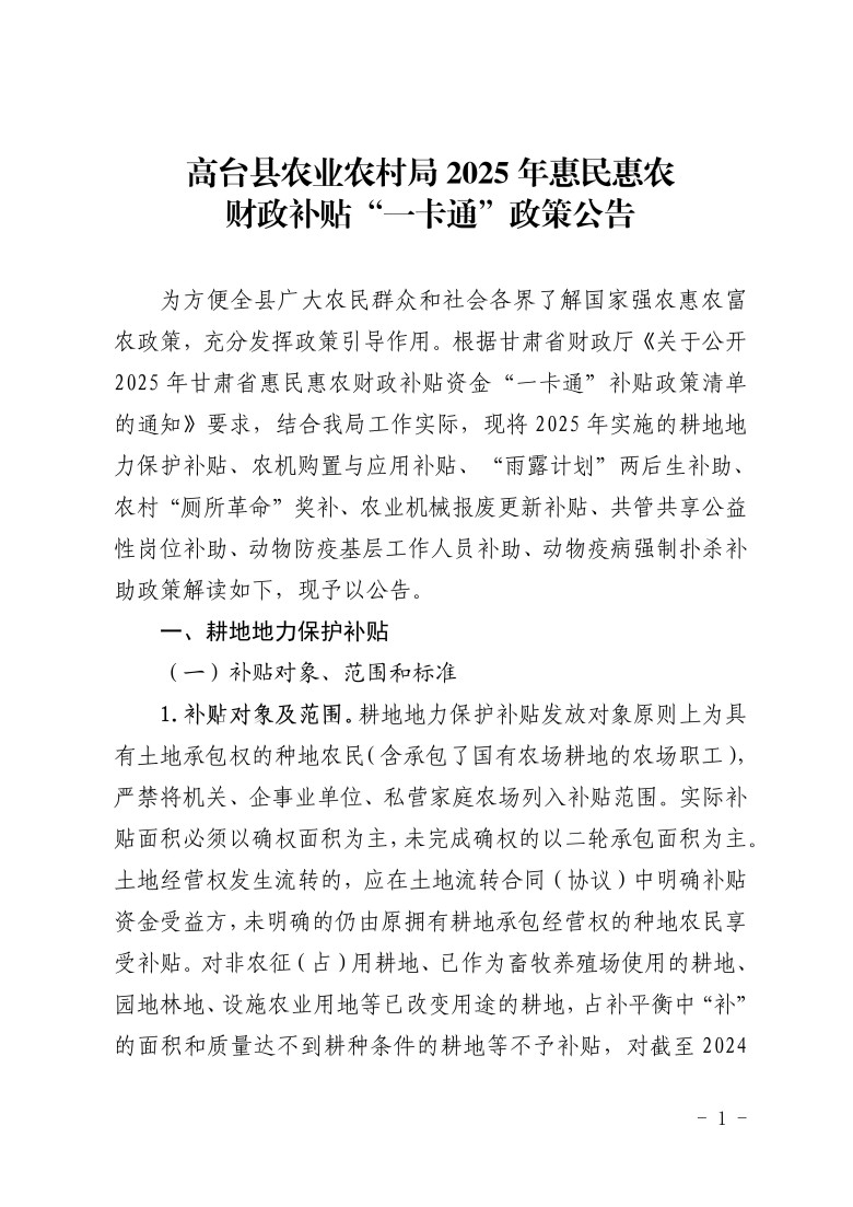 高台县农业农村局2025年惠民惠农财政补贴“一卡通”政策公告