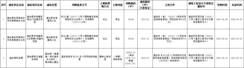 现将2025年8月高台县建设工程规划许可证公示如下: