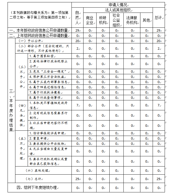 根据《中华人民共和国政府信息公开条例》有关规定,不断完善工作机制,规范办理程序,确保政府信息公开申请按法定程序、法定时限规范答复。切实做好我县政府信息依申请公开工作,满足公民、法人或者其他组织生产、生活、科研等特殊需要。2024年,我县共收到公民、法人或者其他组织依申请公开政府相关信息的申请29件,线上依申请公开23件,线下依申请公开6件,已协调相关责任单位全部按期答复。