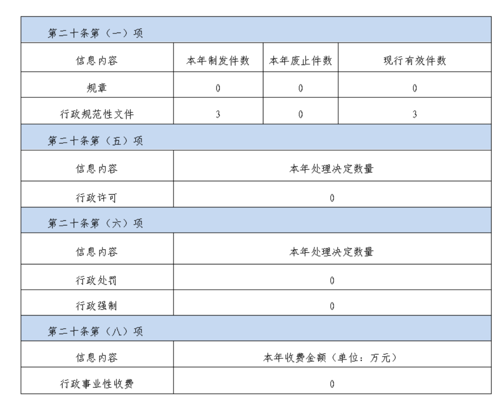 按照《国务院办公厅关于印发<政府信息公开信息处理费管理办法>的通知》(国办函〔2020〕109号)规定的按件、按量收费标准,本年度没有产生信息公开处理费。