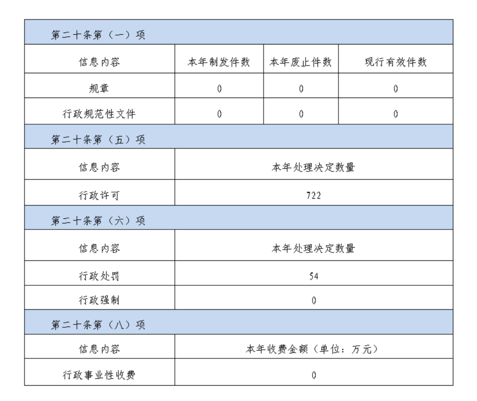 按照《国务院办公厅关于印发<政府信息公开信息处理费管理办法>的通知》(国办函〔2020〕109号)规定的按件、按量收费标准,本年度没有产生信息公开处理费。