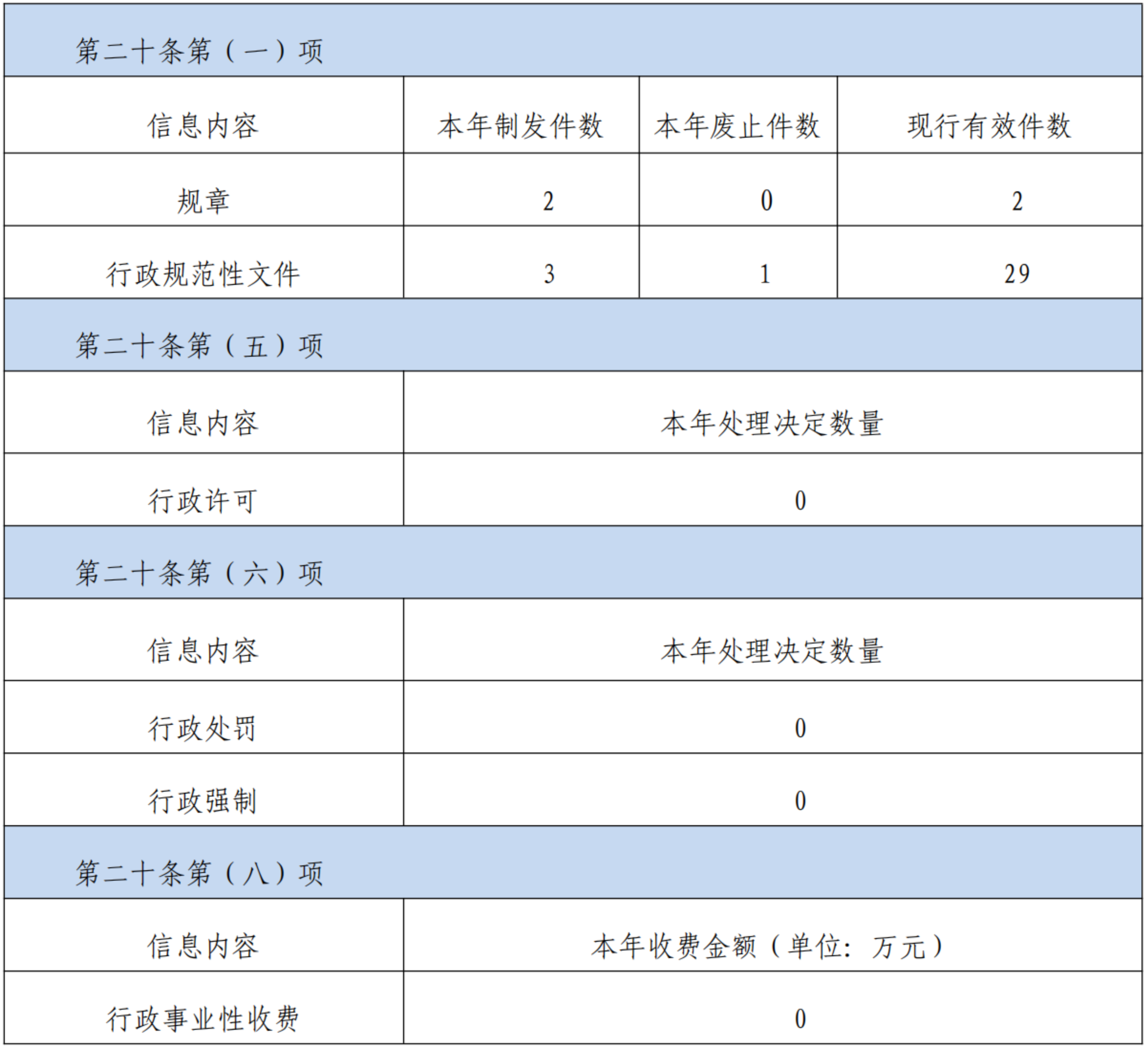 按照《国务院办公厅关于印发<政府信息公开信息处理费管理办法>的通知》(国办函〔2020〕109号)规定的按件、按量收费标准,本年度没有产生信息公开处理费。