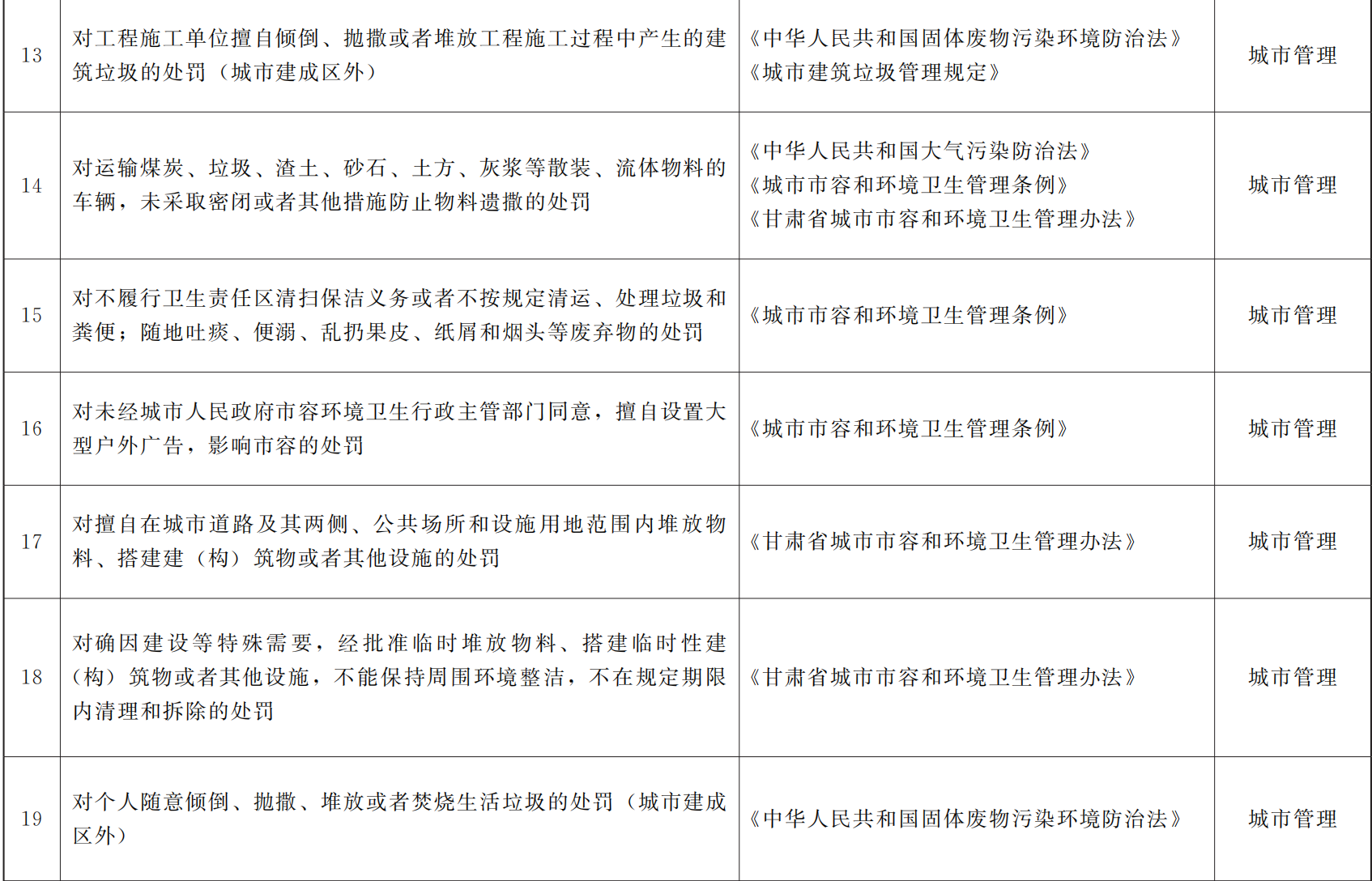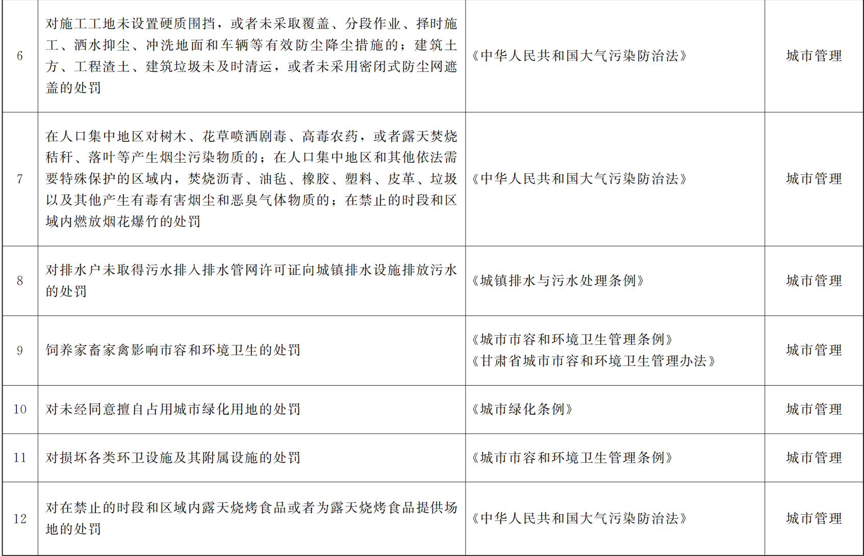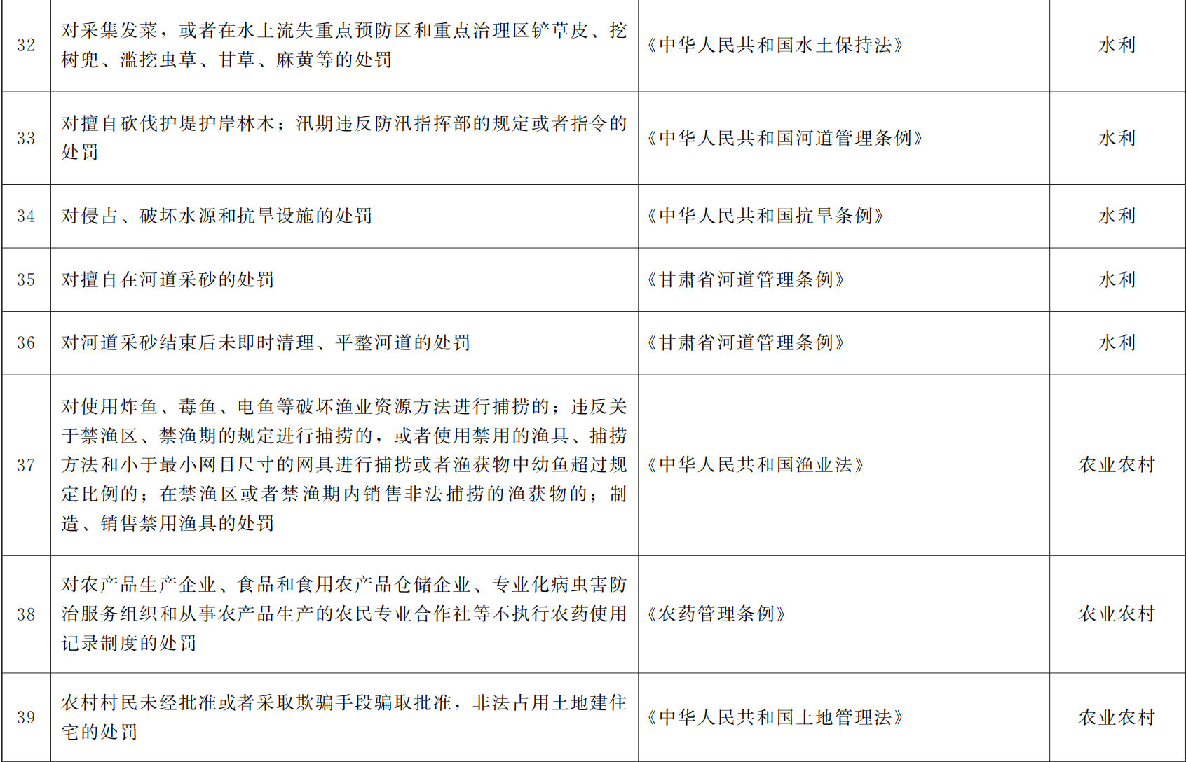 甘肃省赋予乡镇(街道)部分县级行政处罚权指导目录